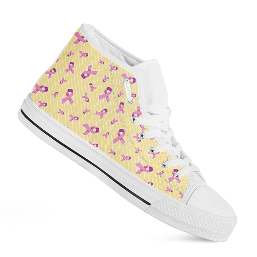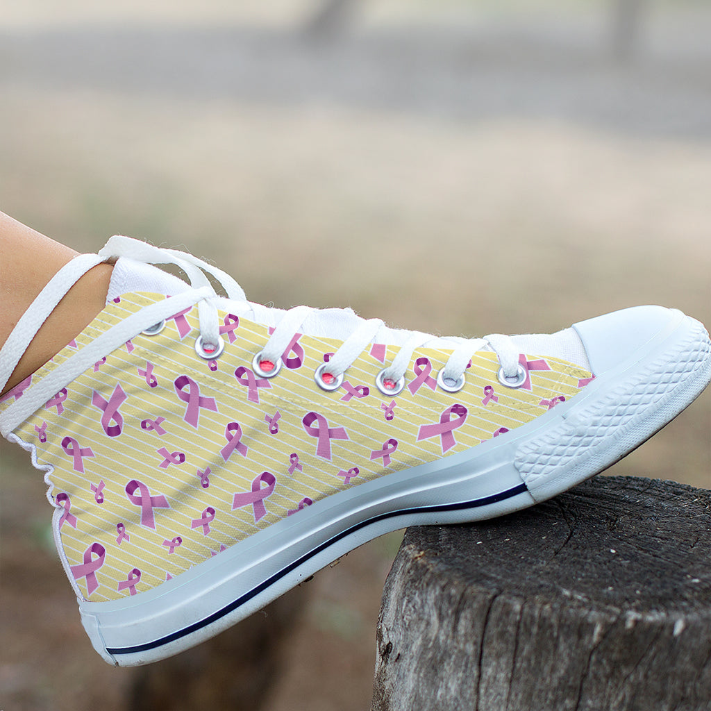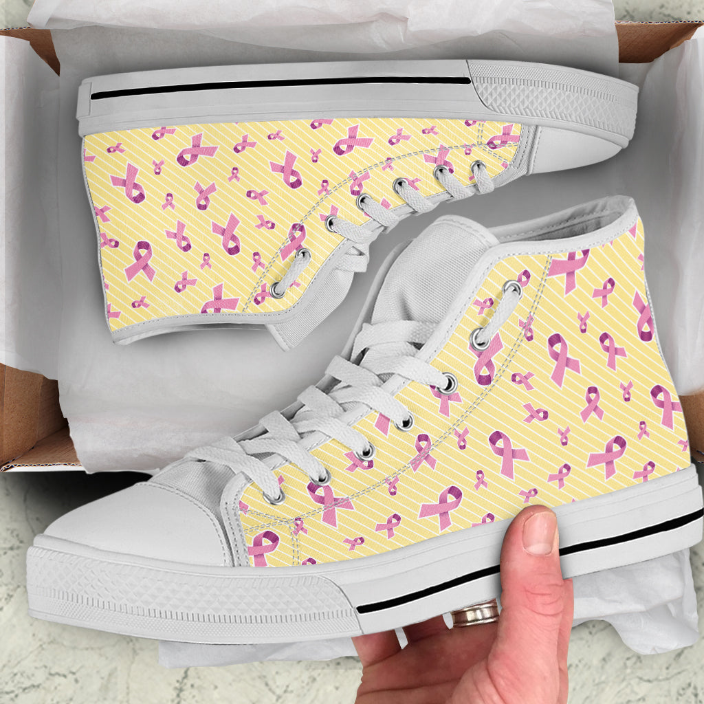 Pastel Breast Cancer Awareness Print White High Top Shoes