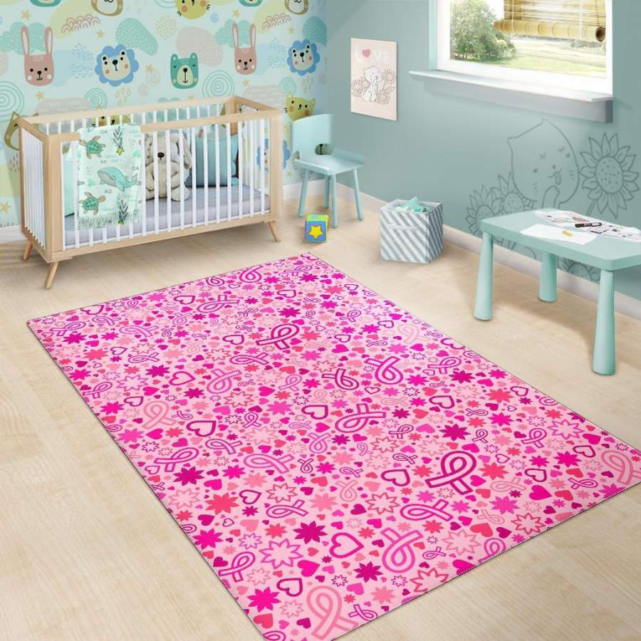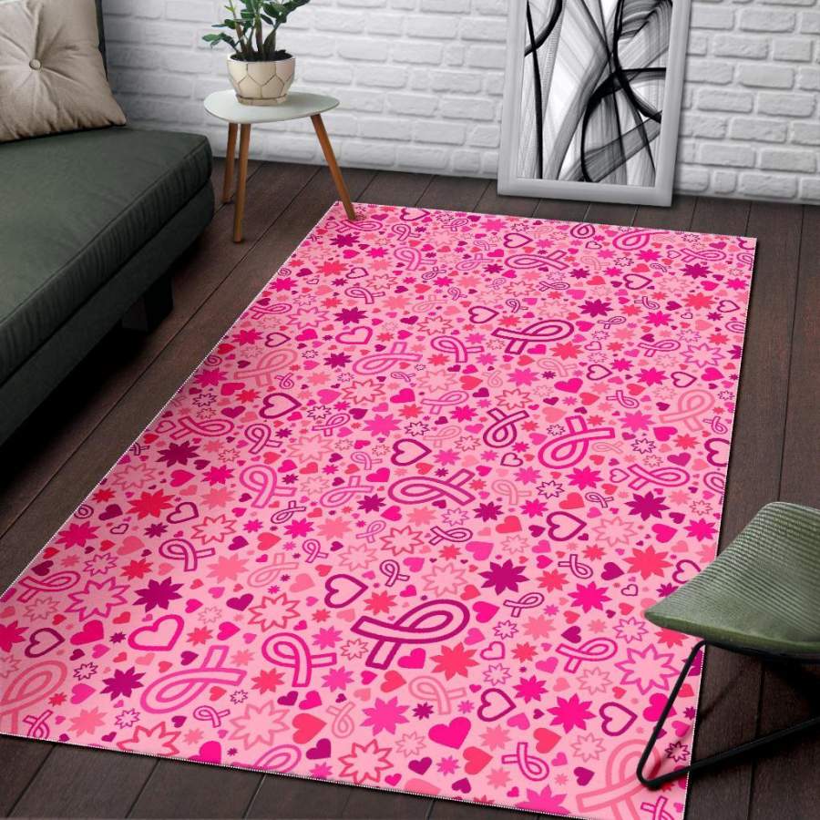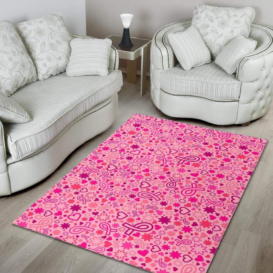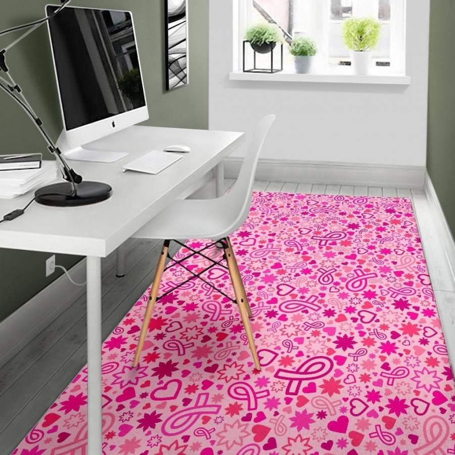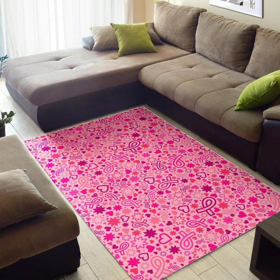 Pattern Print Breast Cancer Awareness Pink Ribbon Area Rug