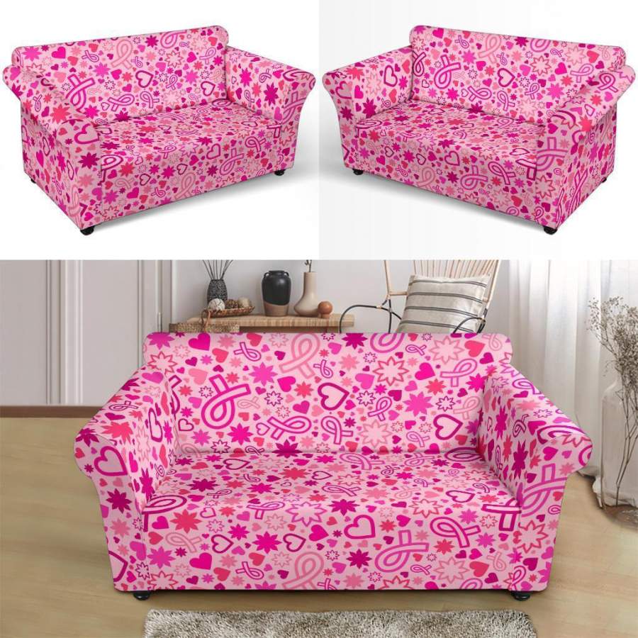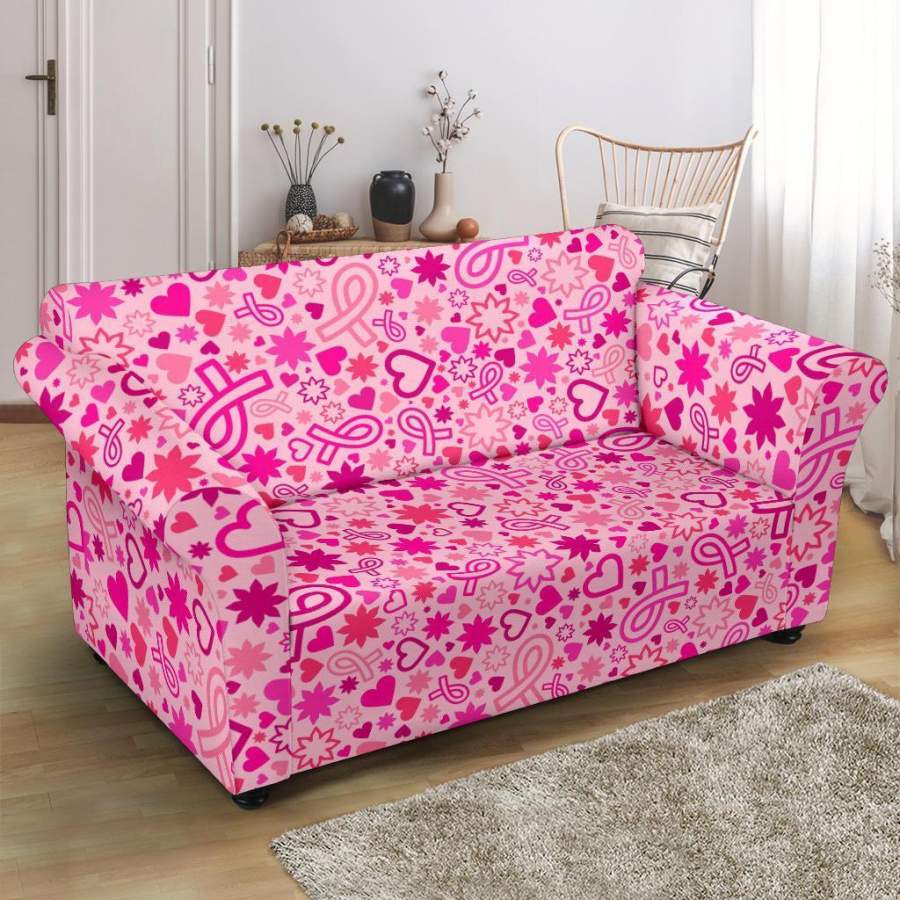 Pattern Print Breast Cancer Awareness Pink Ribbon Loveseat Cover