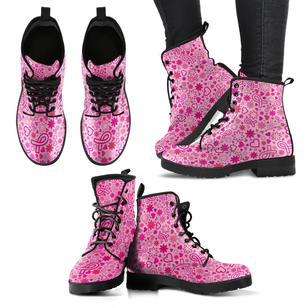 Pattern Print Breast Cancer Awareness Pink Ribbon Men Women Leather Boots Fashion Boots Custom Shoes