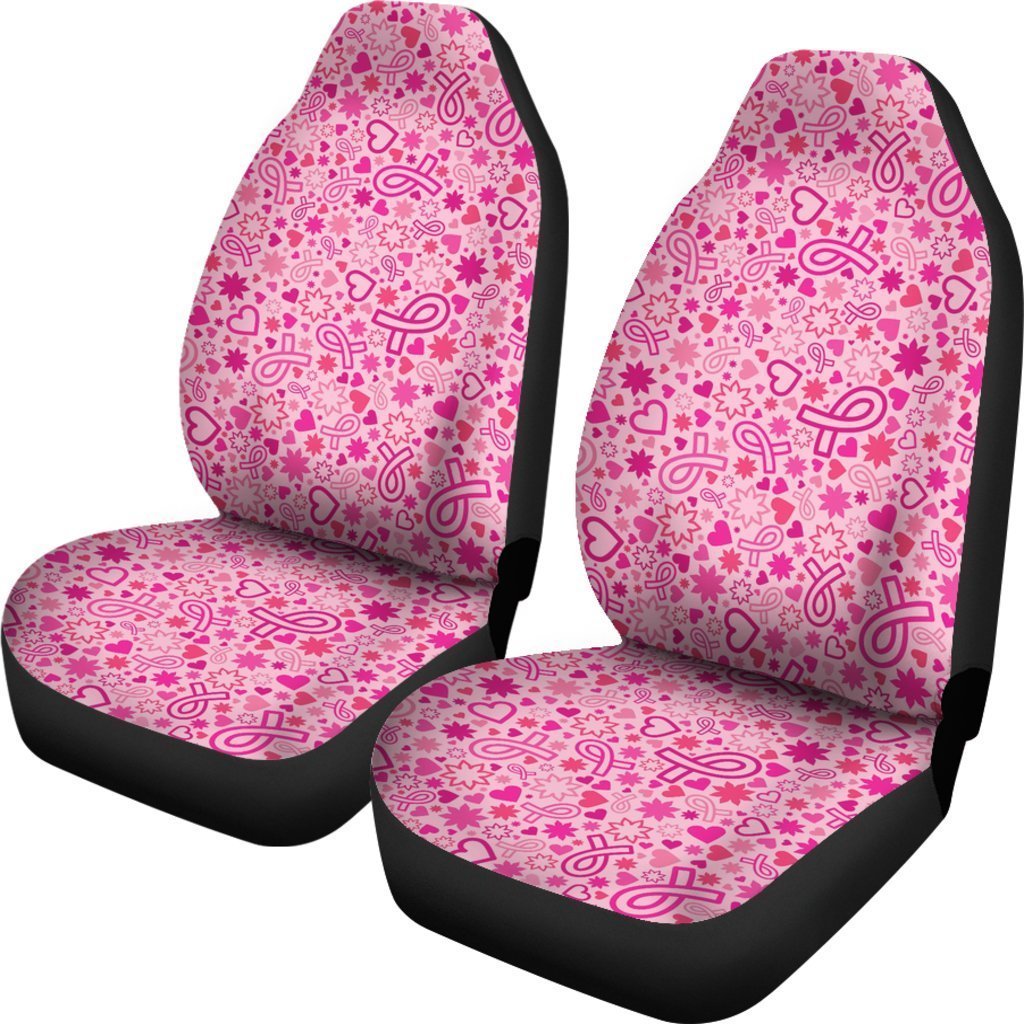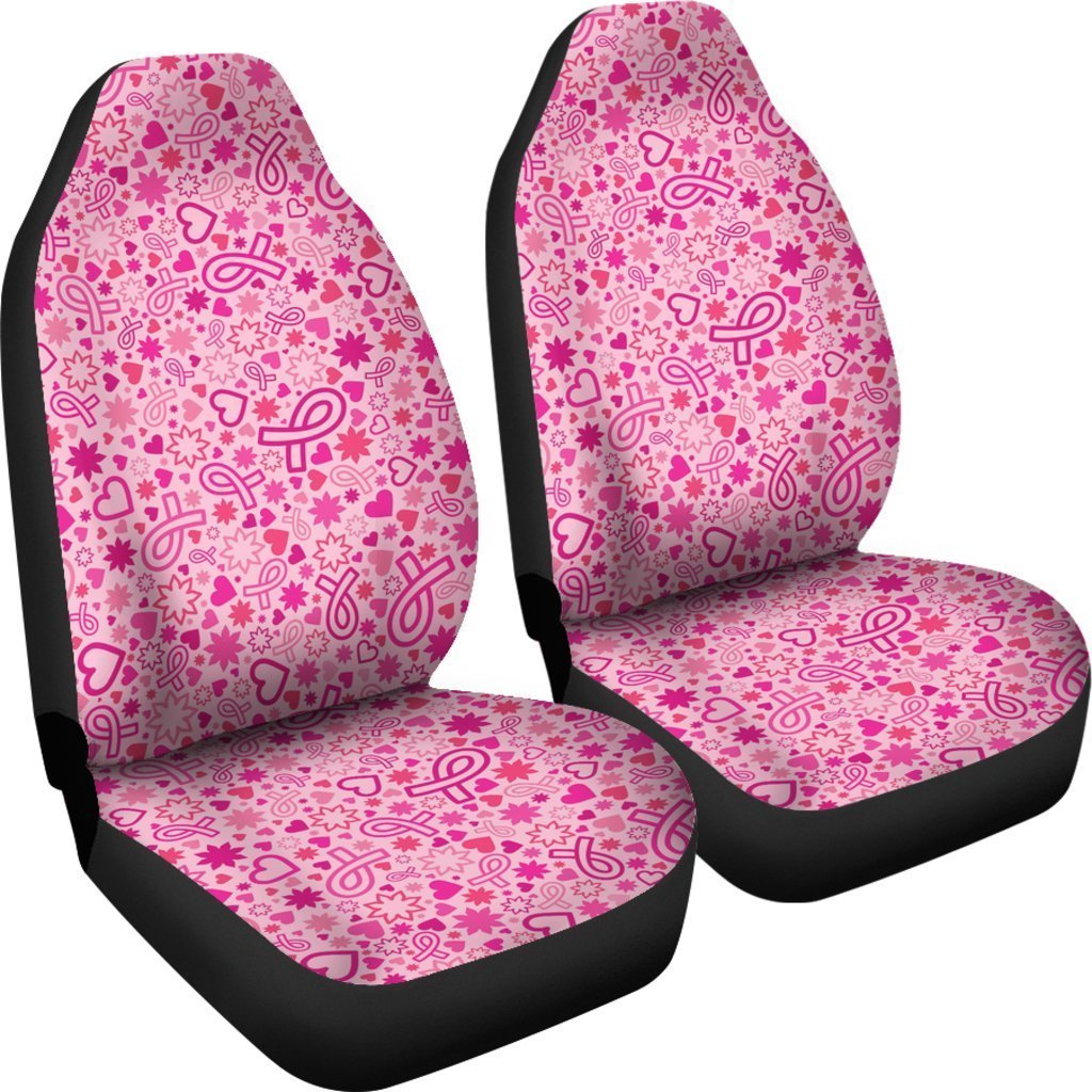 Pattern Print Breast Cancer Awareness Pink Ribbon Seat Cover Car Seat Covers Set 2 Pc, Car Accessories Car Mats