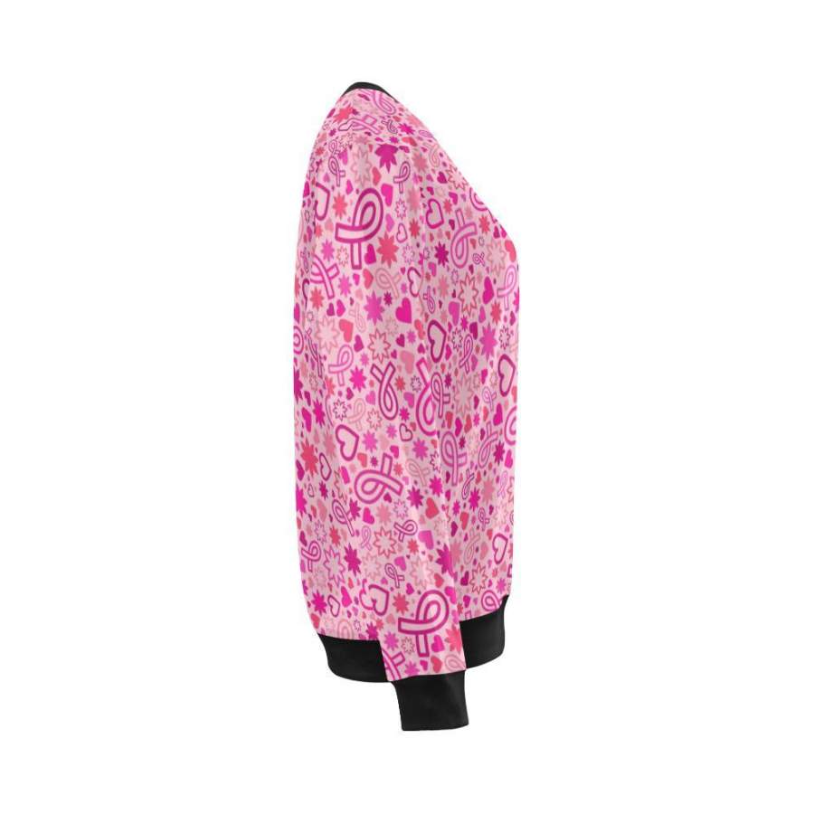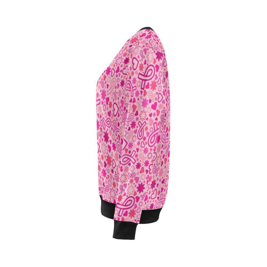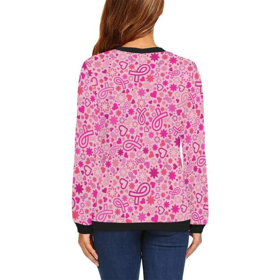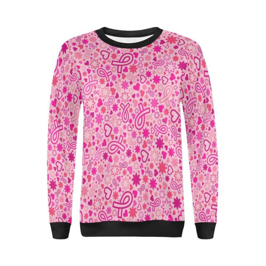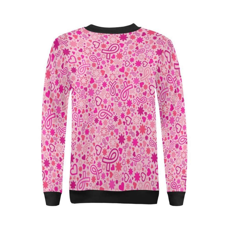 Pattern Print Breast Cancer Awareness Pink Ribbon Women Crewneck Sweatshirt