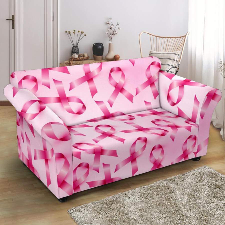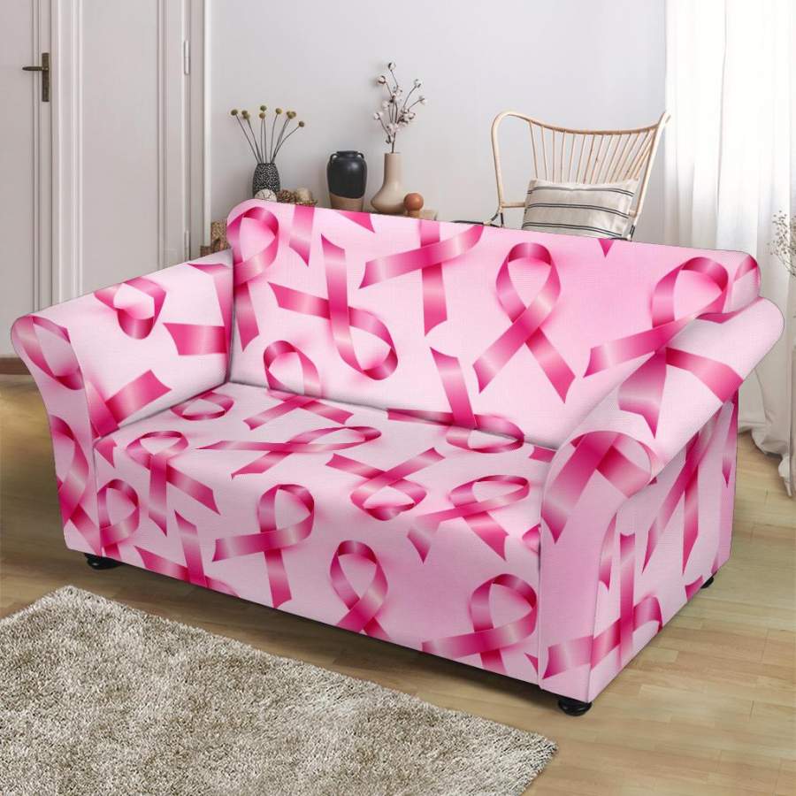 Pattern Print Pink Ribbon Breast Cancer Awareness Loveseat Cover