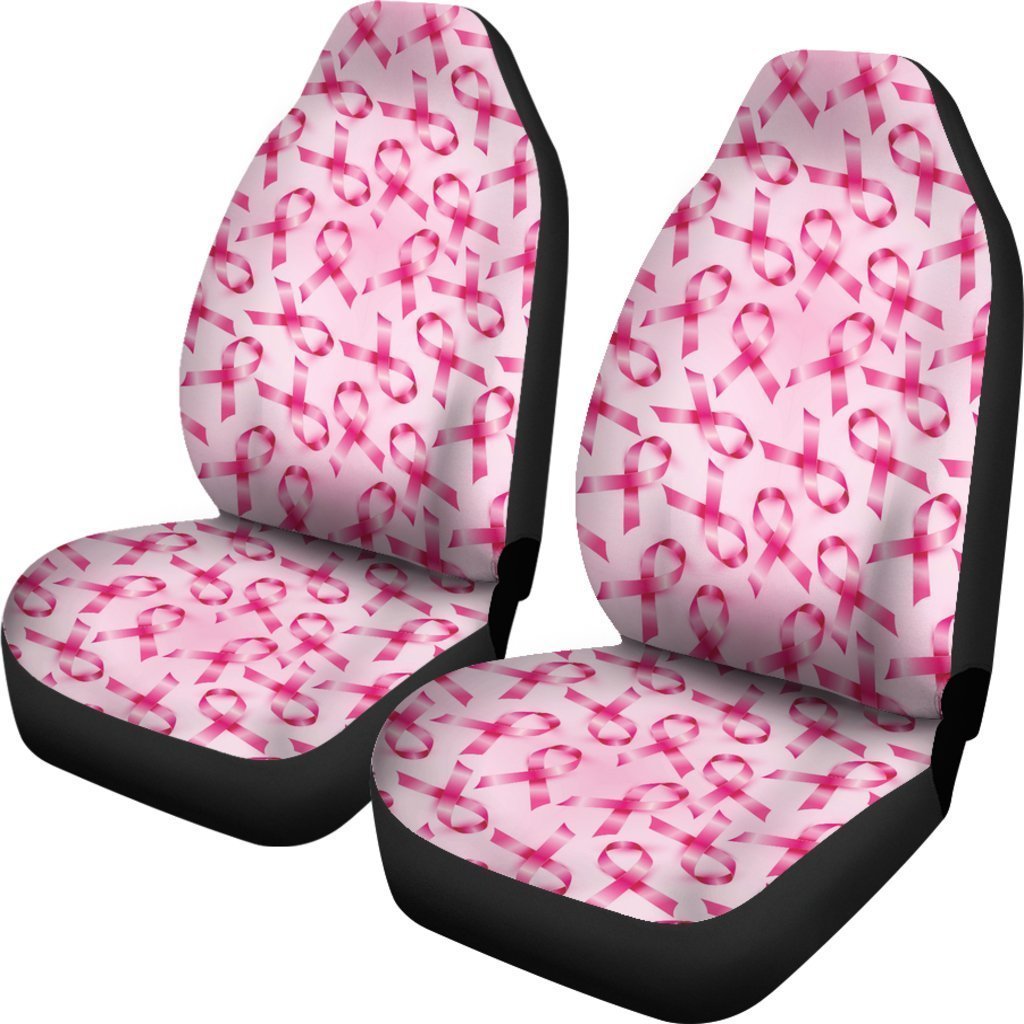 Pattern Print Pink Ribbon Breast Cancer Awareness Seat Cover Car Seat Covers Set 2 Pc, Car Accessories Car Mats