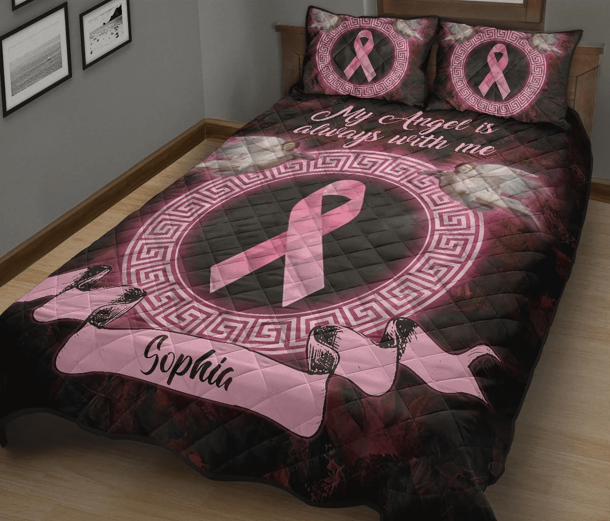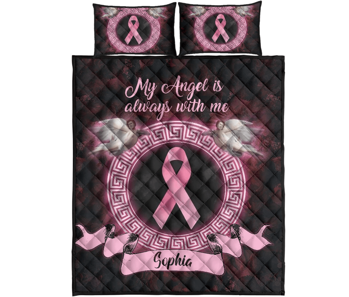 Personalized Angel Breast Cancer Awareness Quilt Bed Set