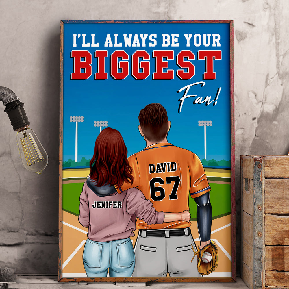Personalized Baseball Couple Poster – Always Be Your Biggest Fan – Couple Shoulder To Shoulder