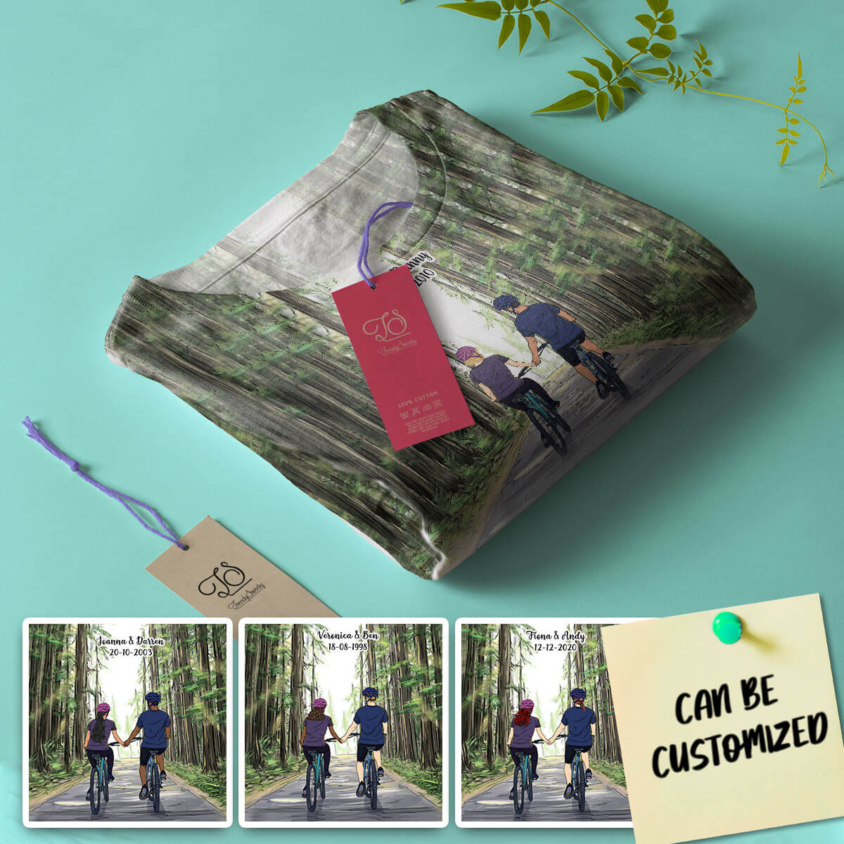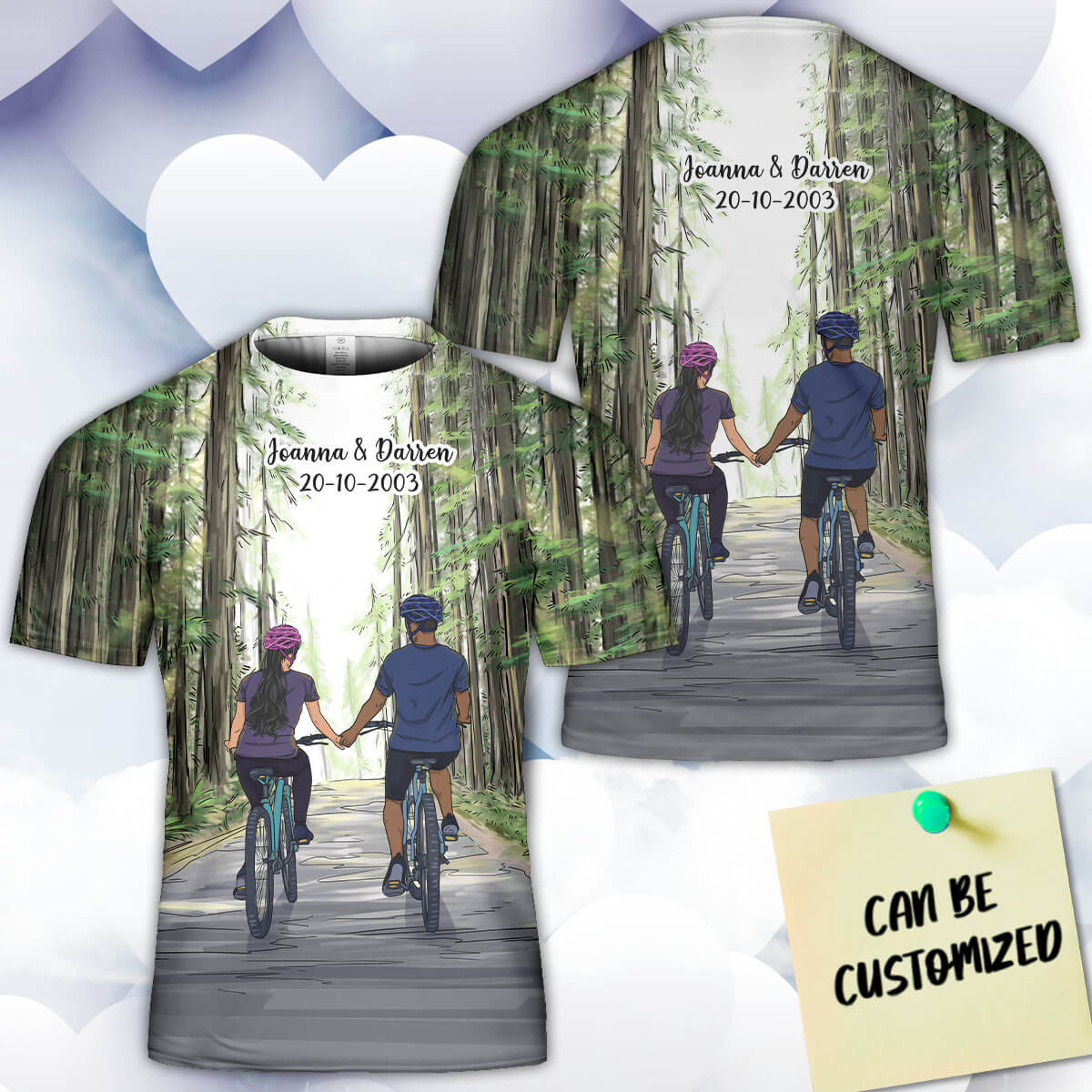 Personalized Bicycling Couple 3D Art All Over Print T-Shirt