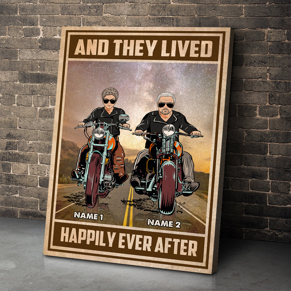 Personalized Biker Couple Poster – And They Lived Happily – Marriage Chapter