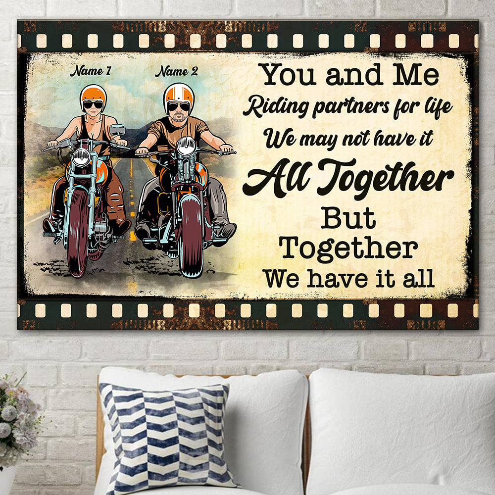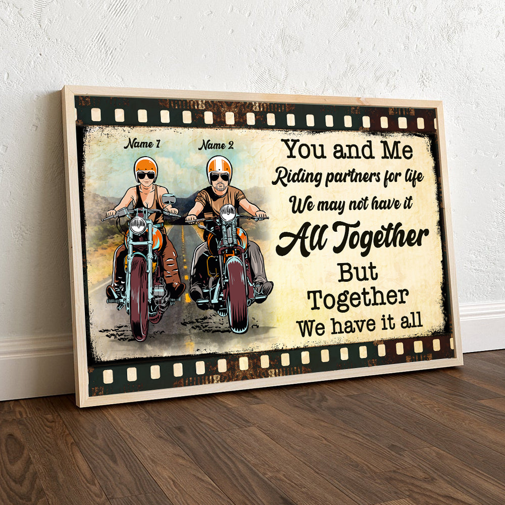 Personalized Biker Couple Poster – You And Me Riding Partners For Life – Film Frame
