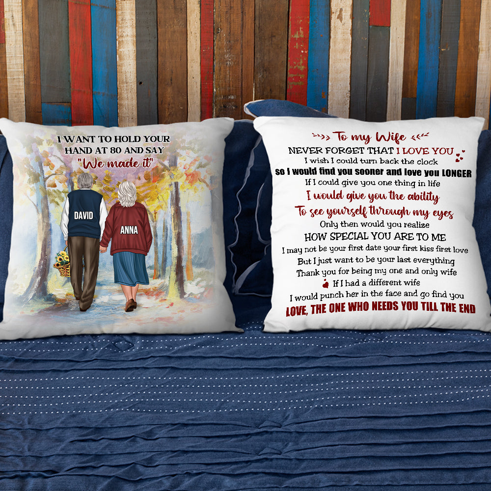 Personalized Old Couple Pillow – To My Wife, At 80 & Say We Made It, Never Forget That I Love You
