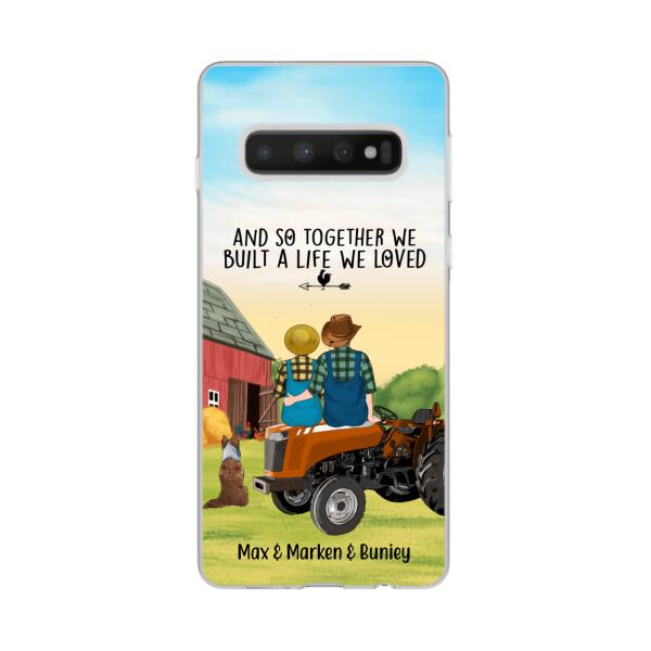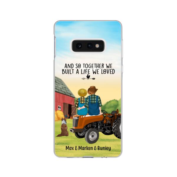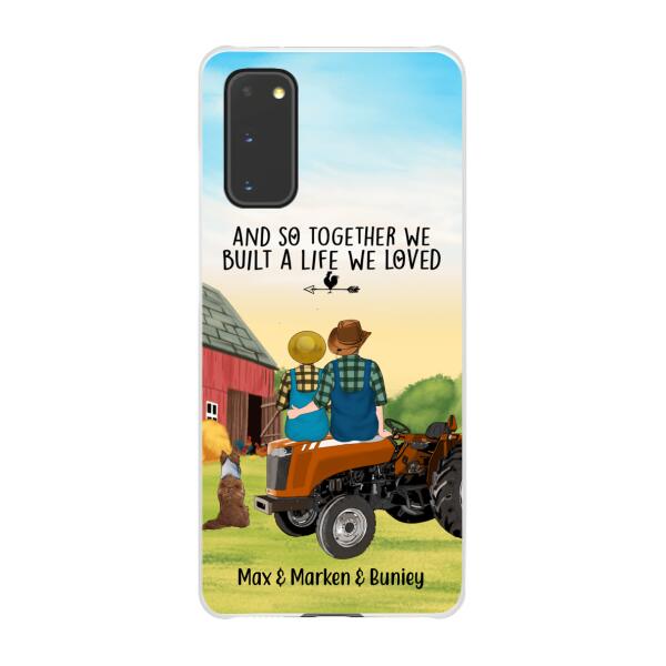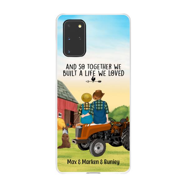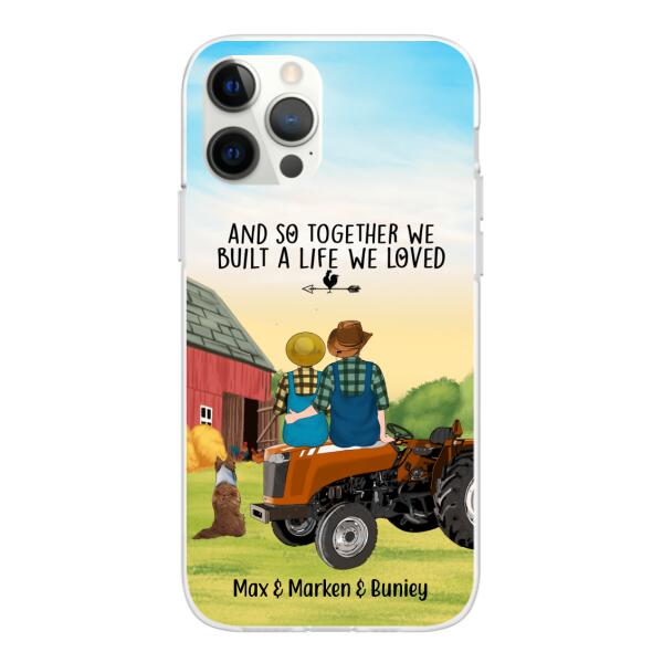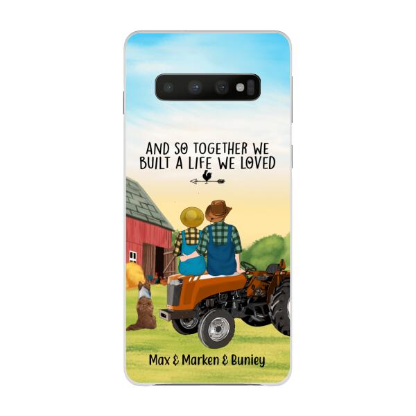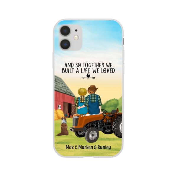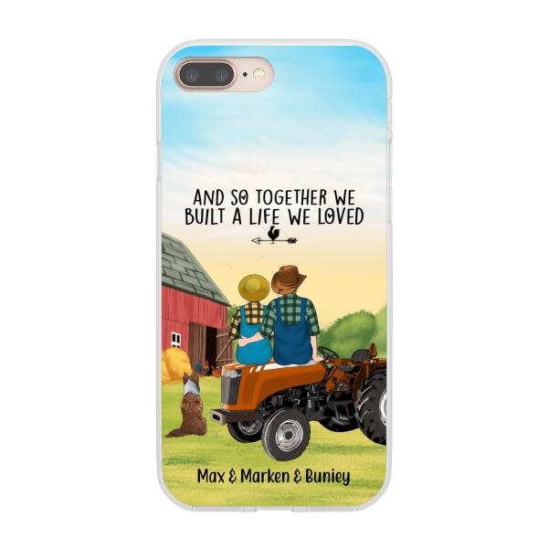 Personalized Phone Case, Farming Couple On Tractor With Dogs, Gift For Farmers, Gift For Dog Lovers
