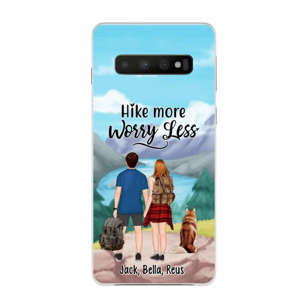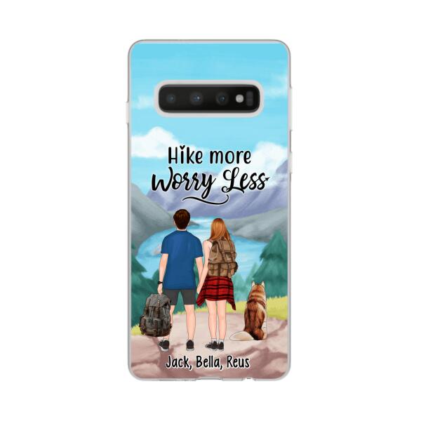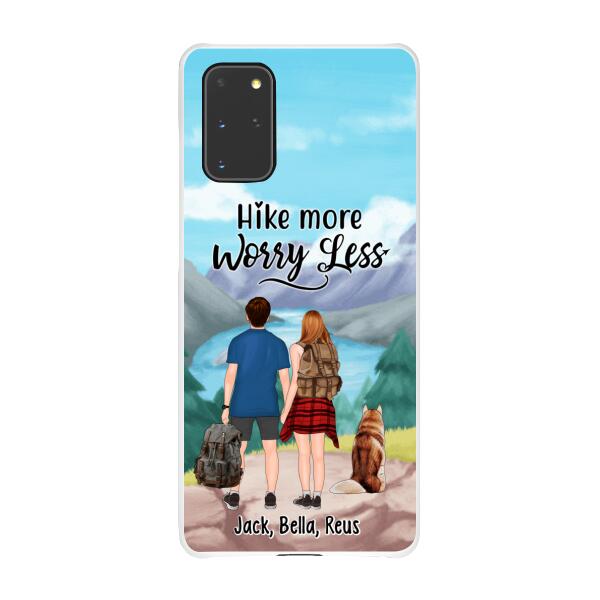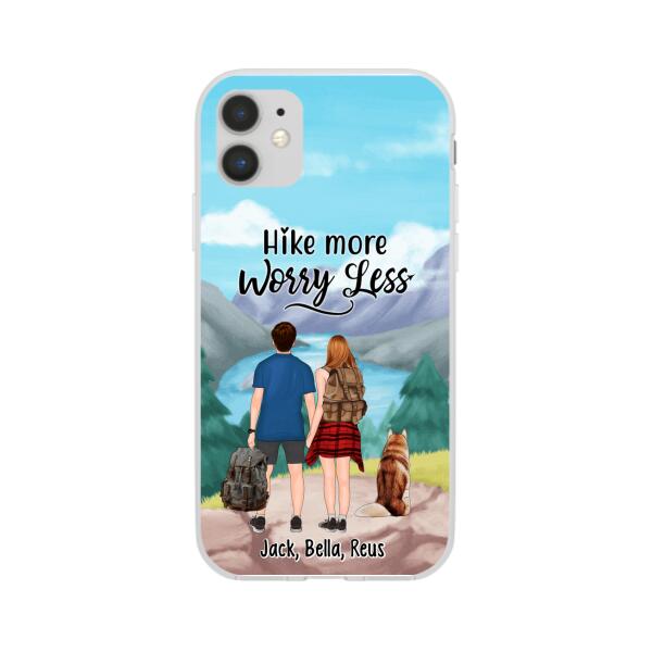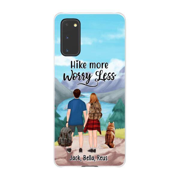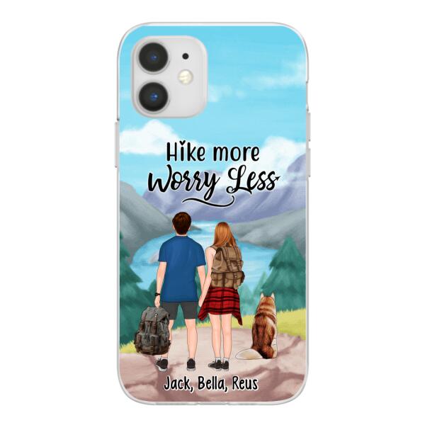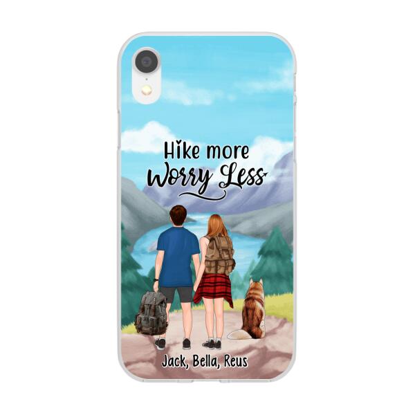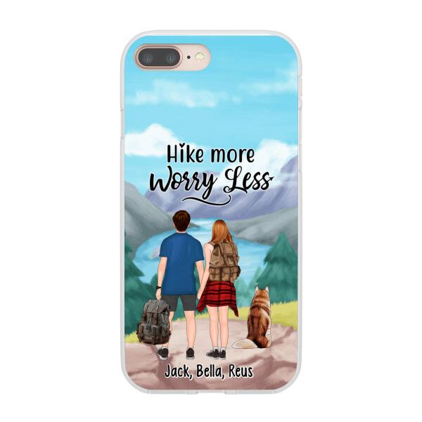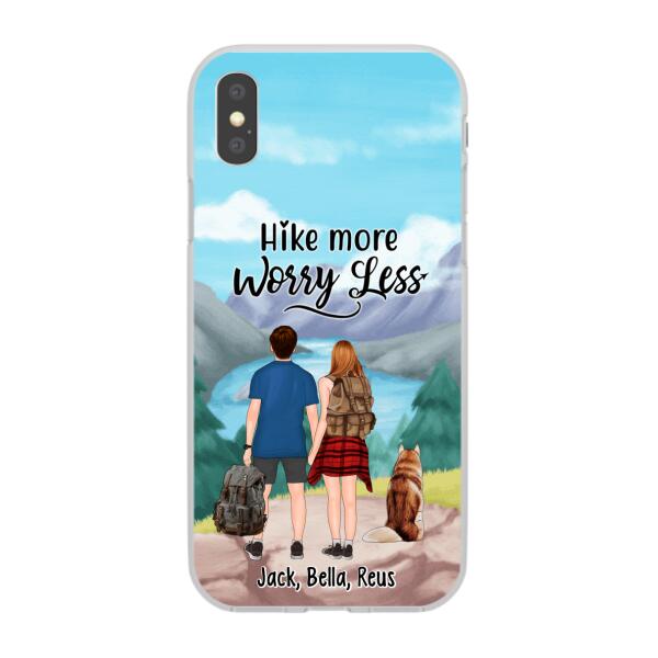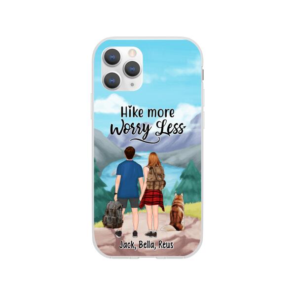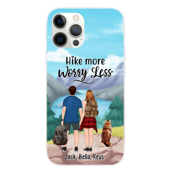 Personalized Phone Case, Hiking Couple With Dogs, Gift For Hikers And Dog Lovers