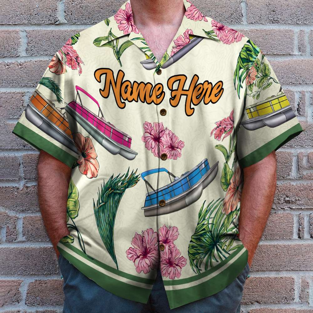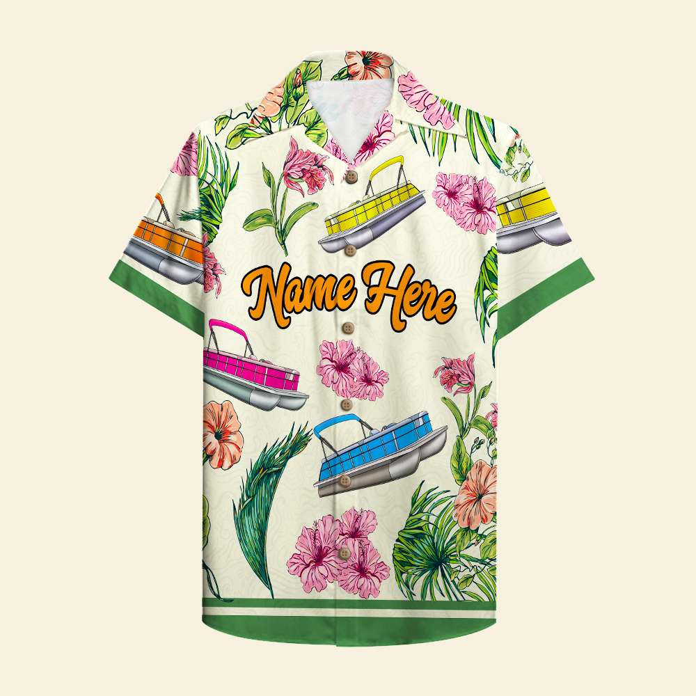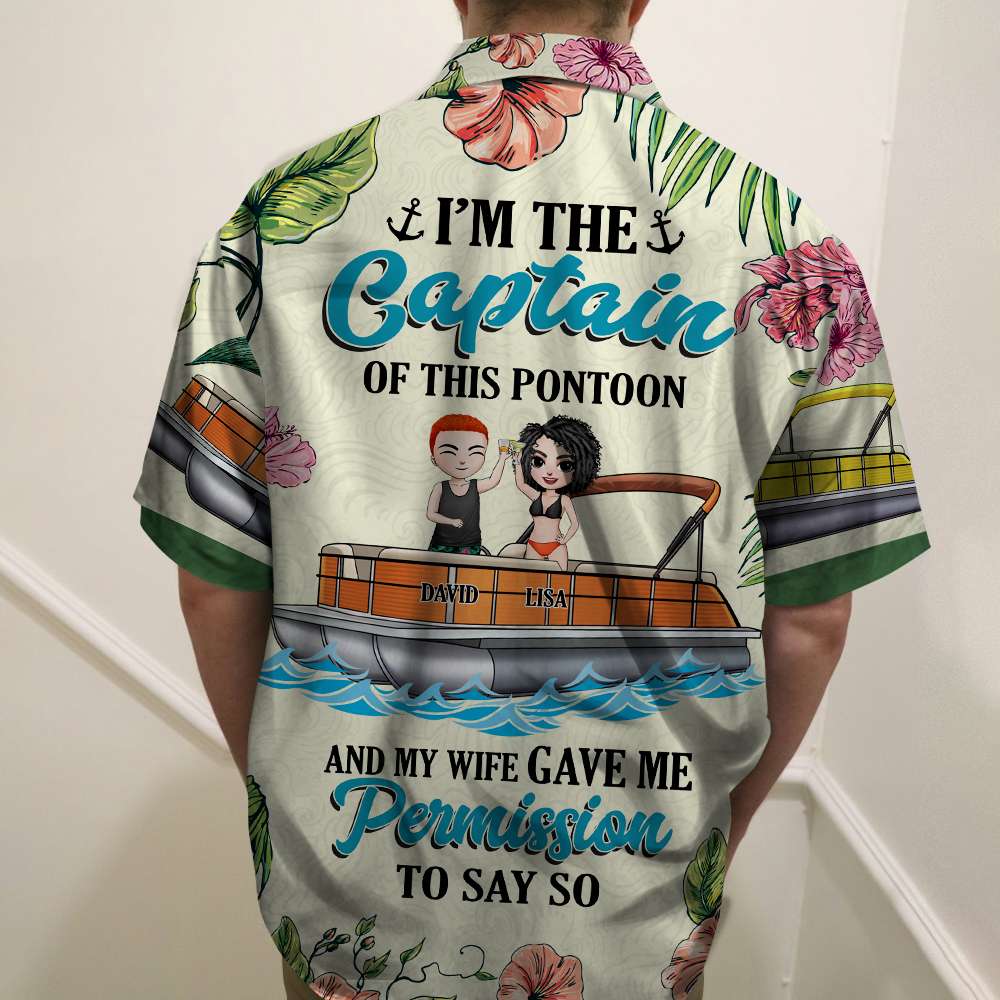 Personalized Pontoon Couple Hawaiian Shirt – I’M The Captain Of This Pontoon – Floral Pattern Fol7-Vd1