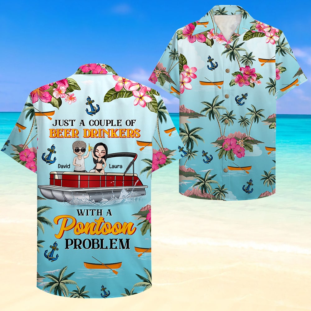 Personalized Pontoon Couple Hawaiian Shirt – Just A Couple Of Beer Drinkers Fol7-Vd1