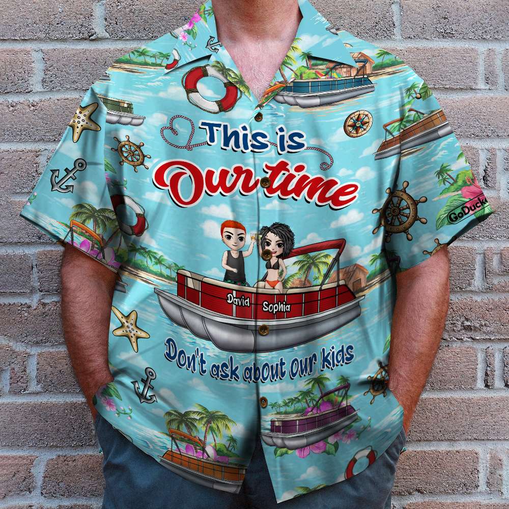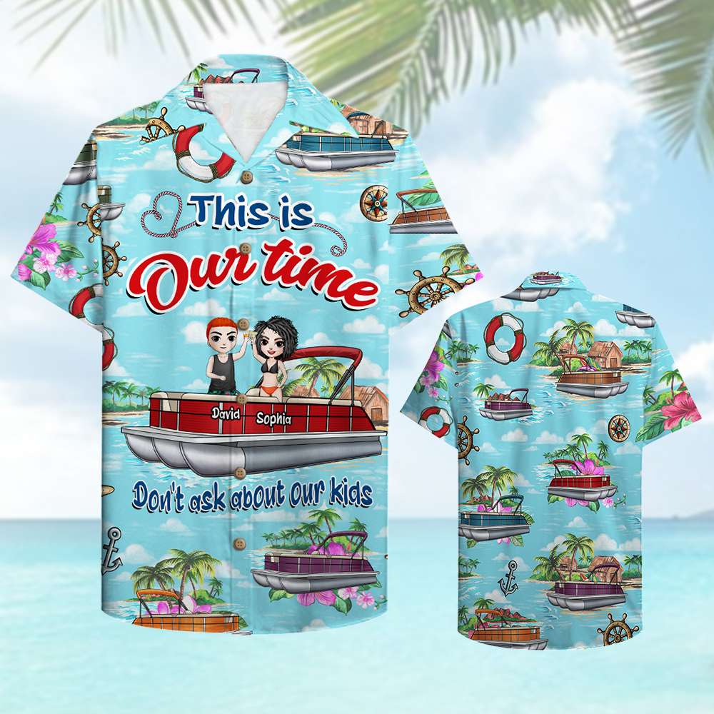 Personalized Pontoon Couple Hawaiian Shirt – This Is Our Time – Beach Pattern