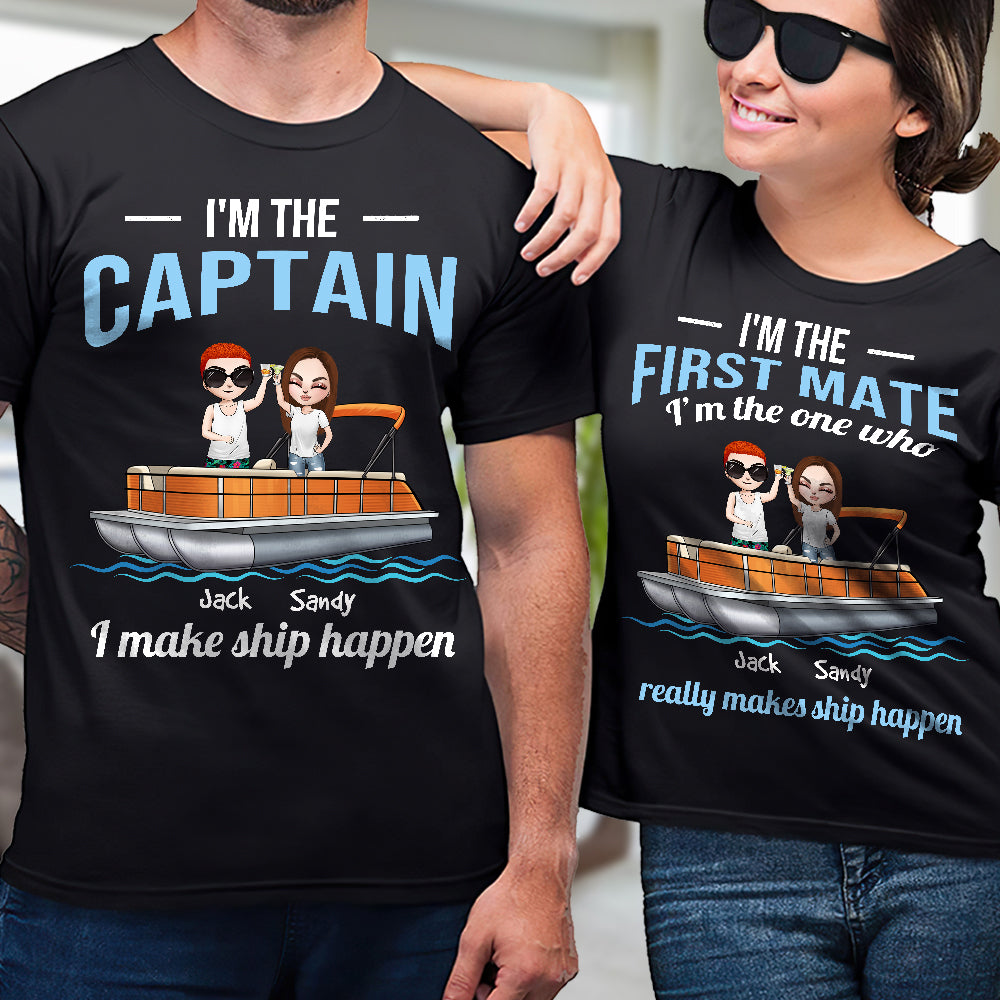 Personalized Pontoon Couple Shirts – I’M The Captain, I Make Ship Happen