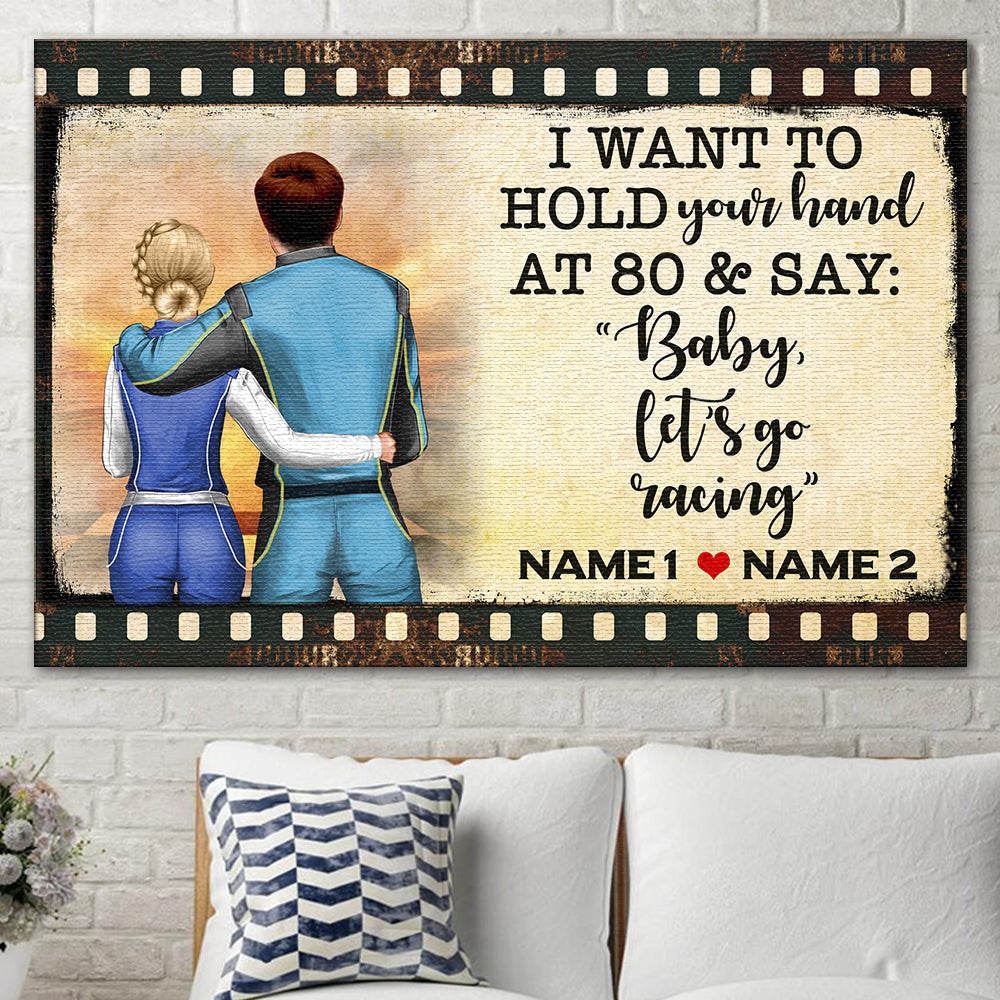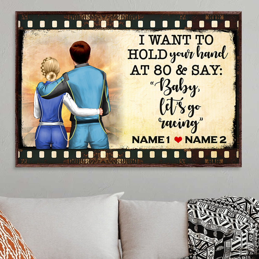 Personalized Racing Couple Poster – I Want To Hold Your Hand At 80 And Let’S Go Racing – Film Frame