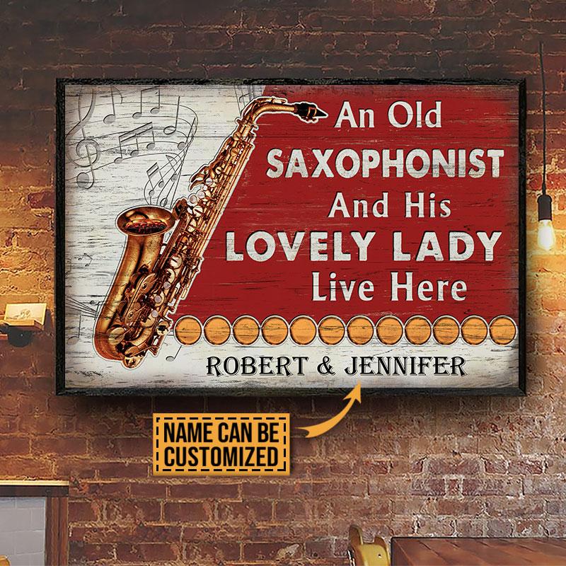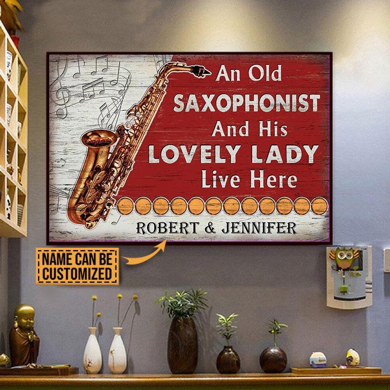 Personalized Saxophone Old Couple Live Here Customized Poster