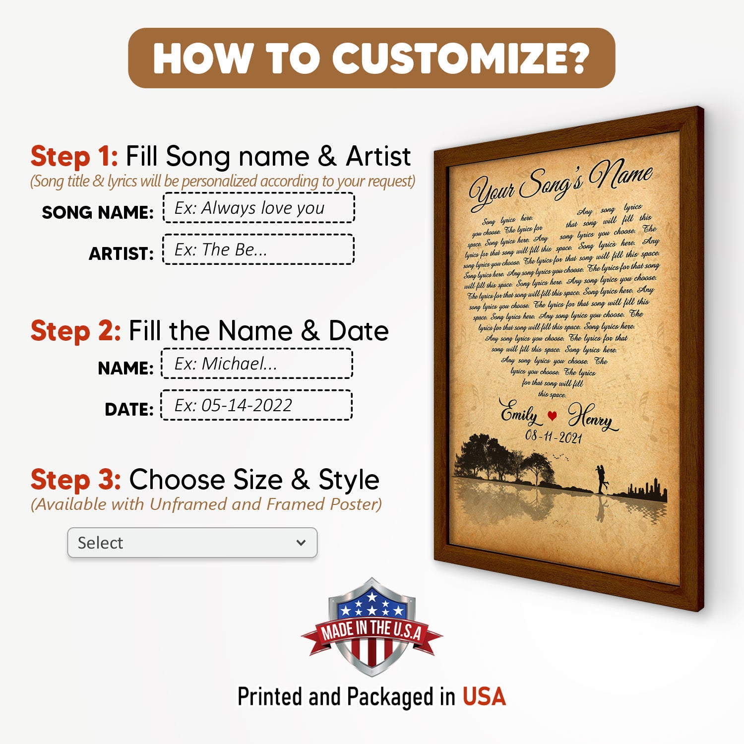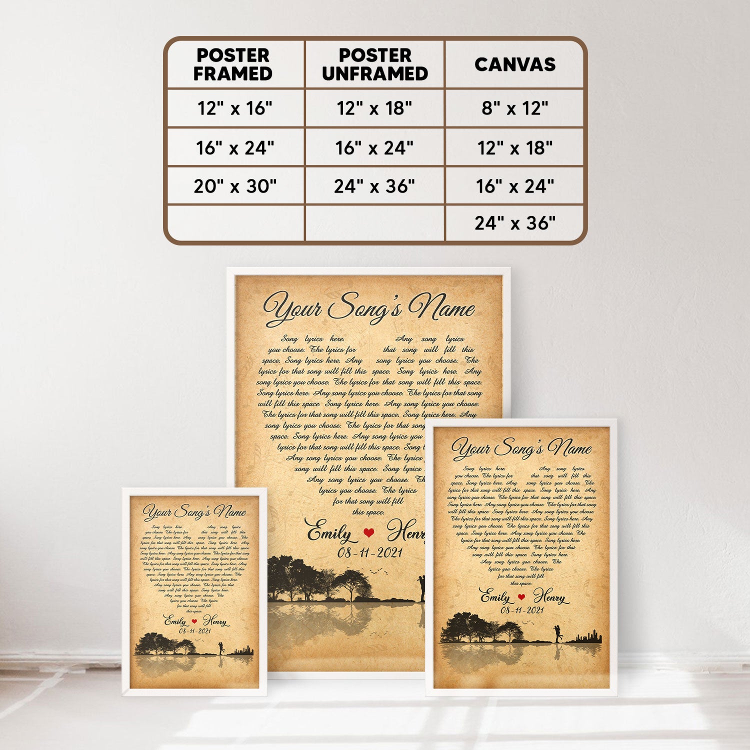 Personalized Song Lyrics, Name & Date Vertical Poster For Couple
