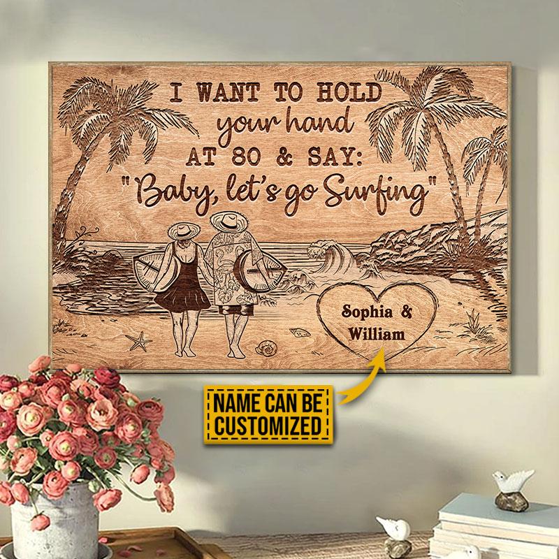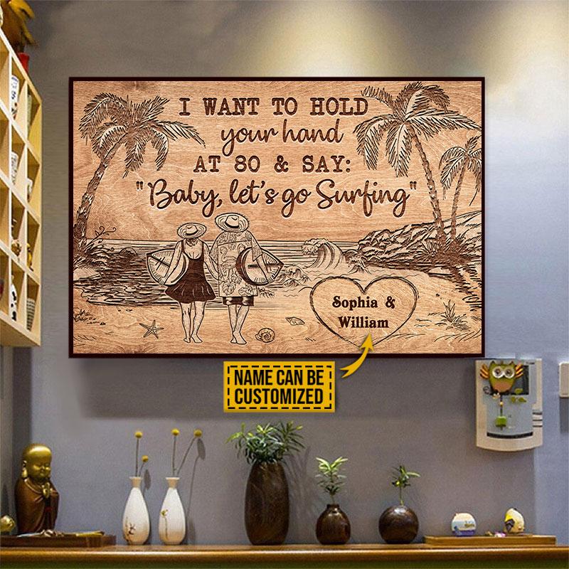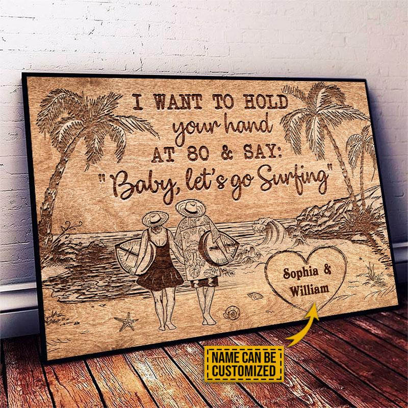 Personalized Surfing Couple Let’s Go Surfing Customized Poster