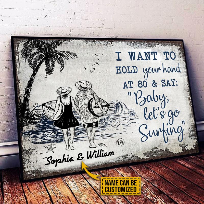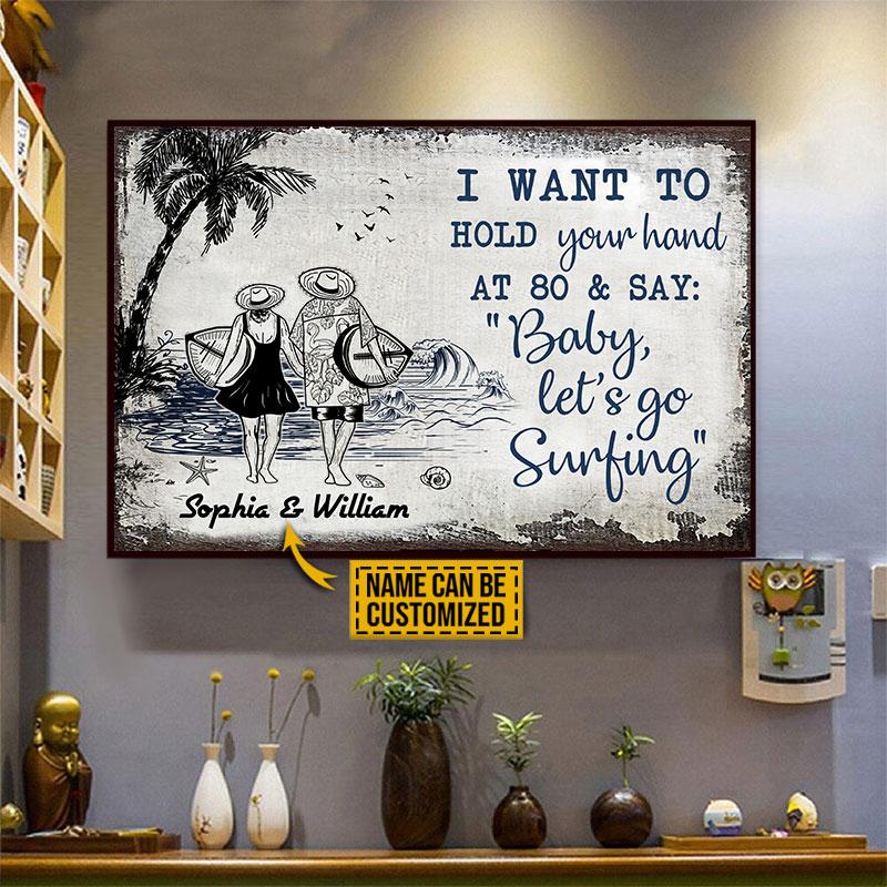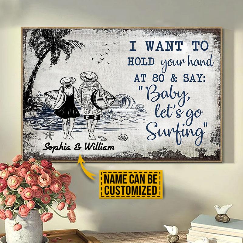Personalized Surfing Couple Let’s Go Surfing Sketch Customized Poster