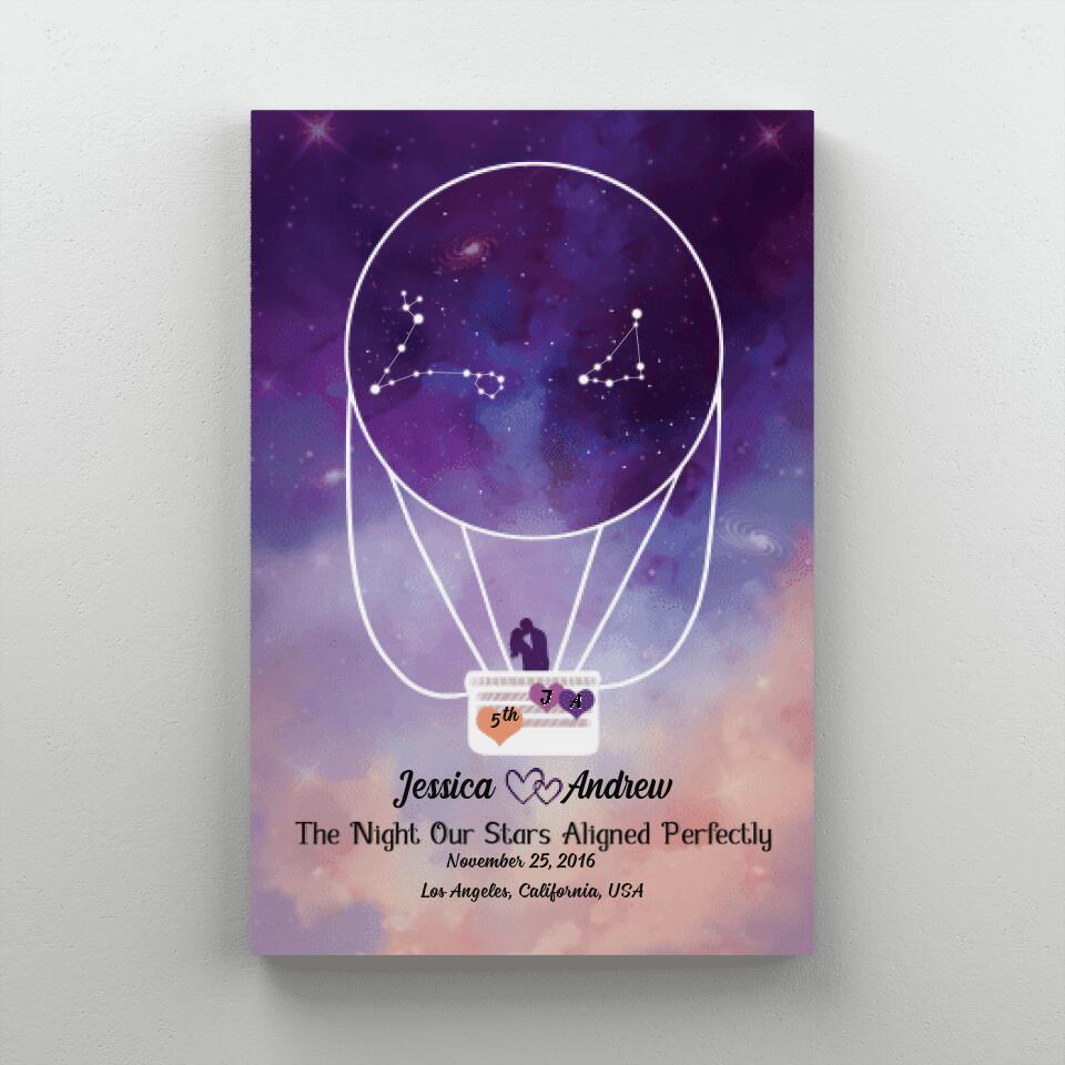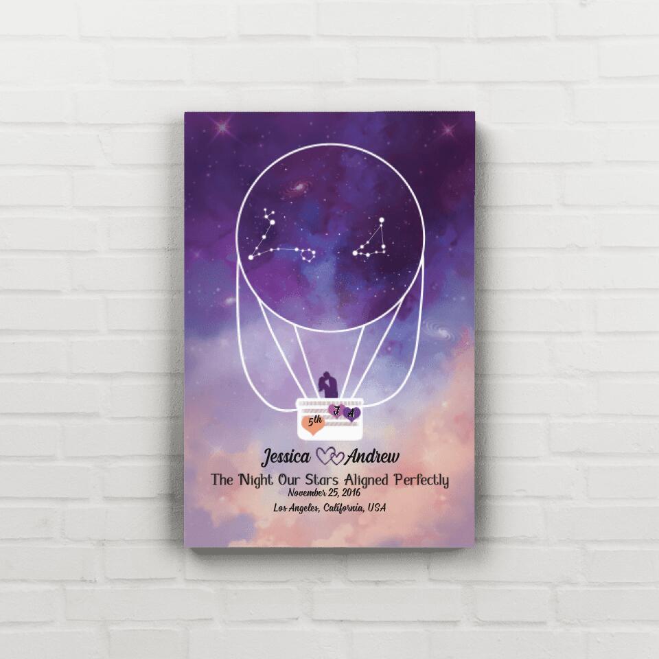 Pesonalized Canvas/Poster, Star Sign Couple On Hot Air Balloon, Anniversary Gift For Couple