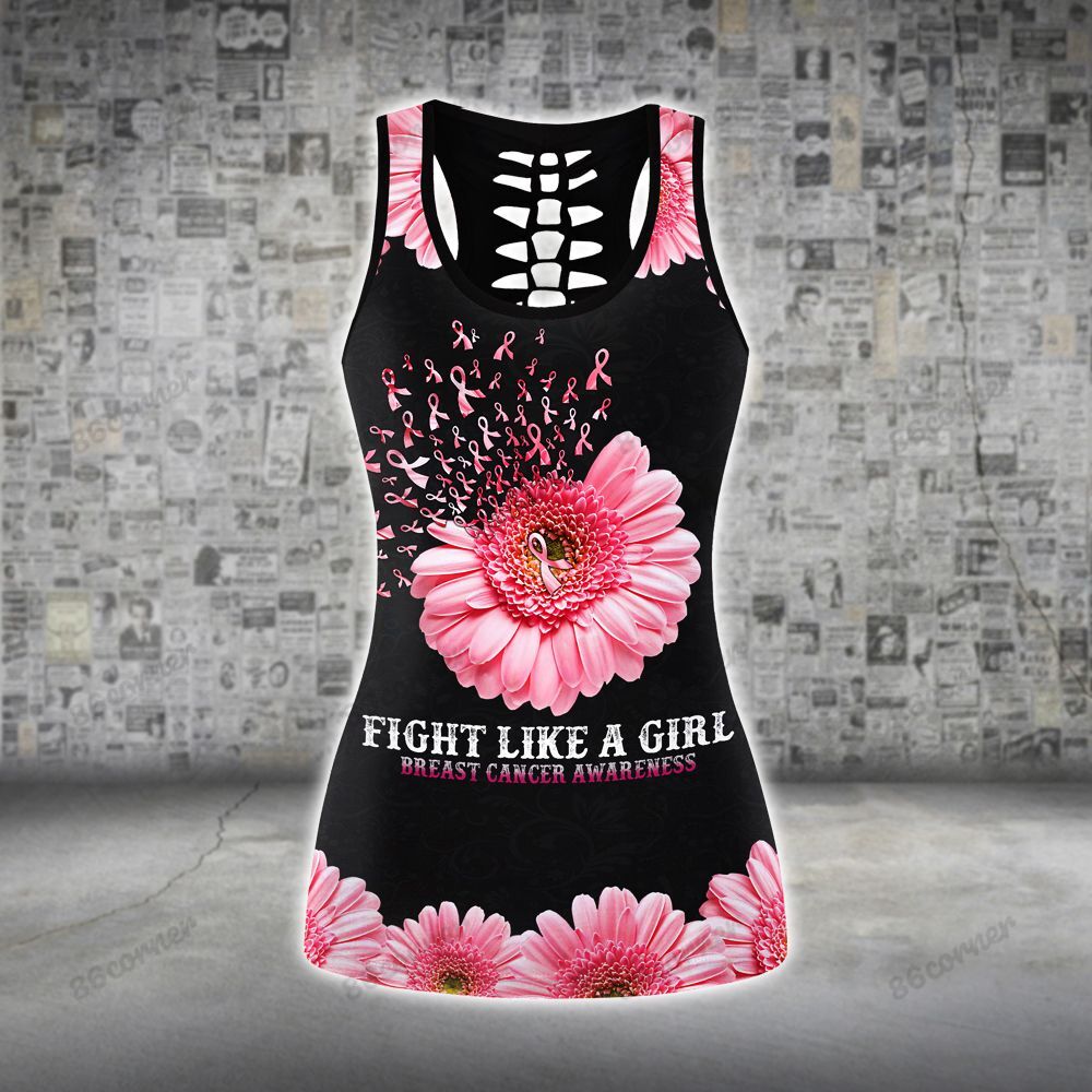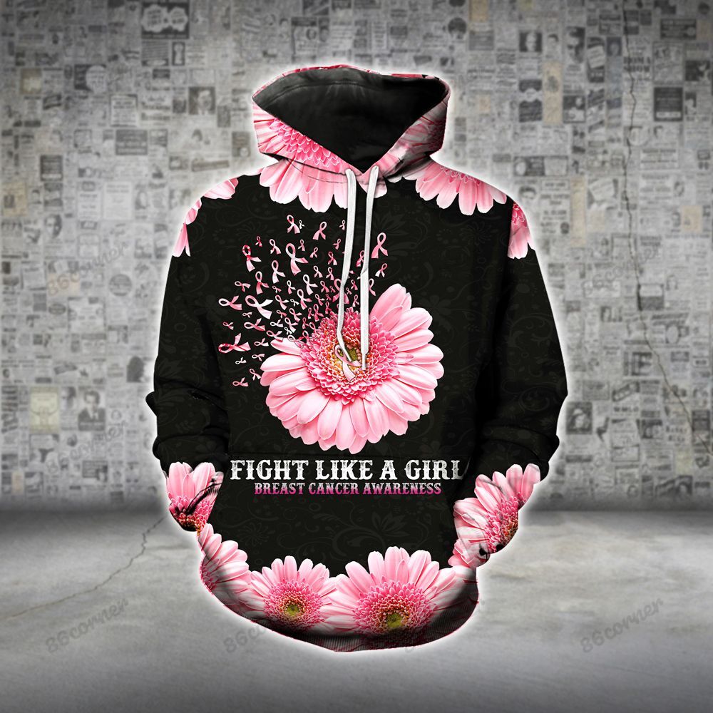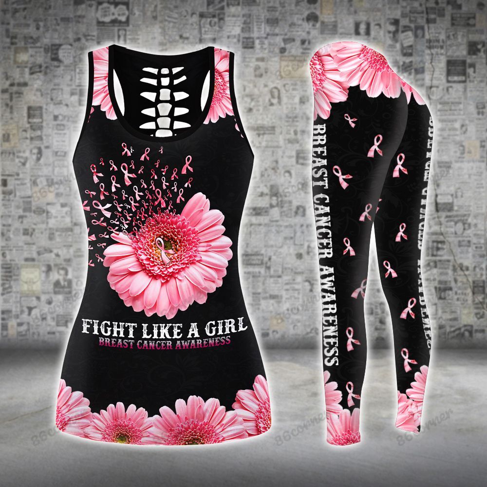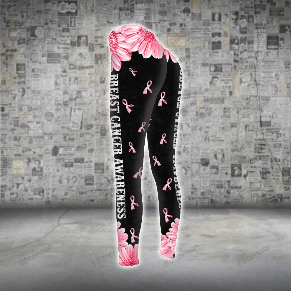 Pink Flower Ribbon Breast Cancer Awareness Legging And Hoodie Set