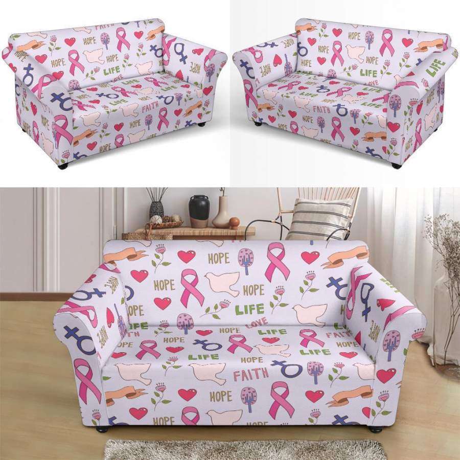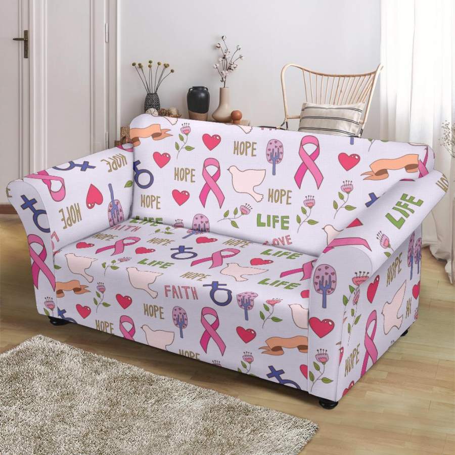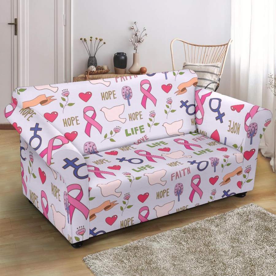 Pink Ribbon Breast Cancer Awareness Pattern Print Loveseat Cover