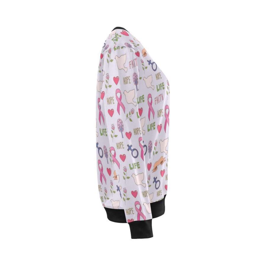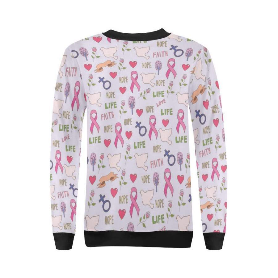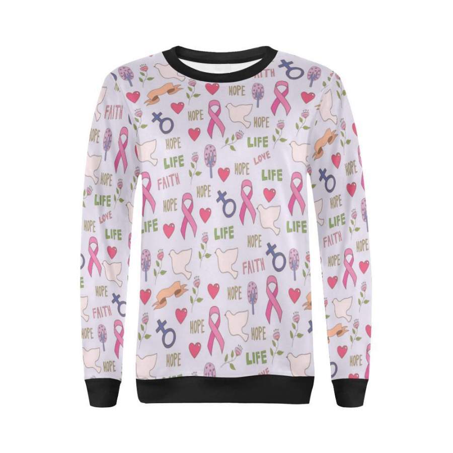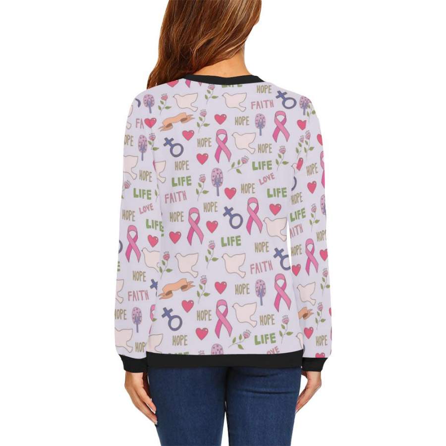 Pink Ribbon Breast Cancer Awareness Pattern Print Women Crewneck Sweatshirt