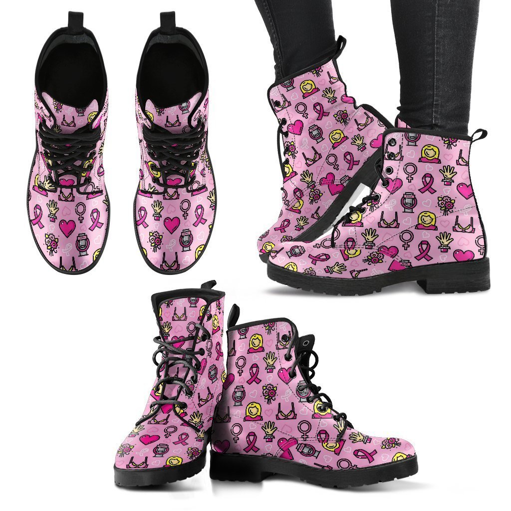 Pink Ribbon Breast Cancer Awareness Print Pattern Men Women Leather Boots Fashion Boots Custom Shoes