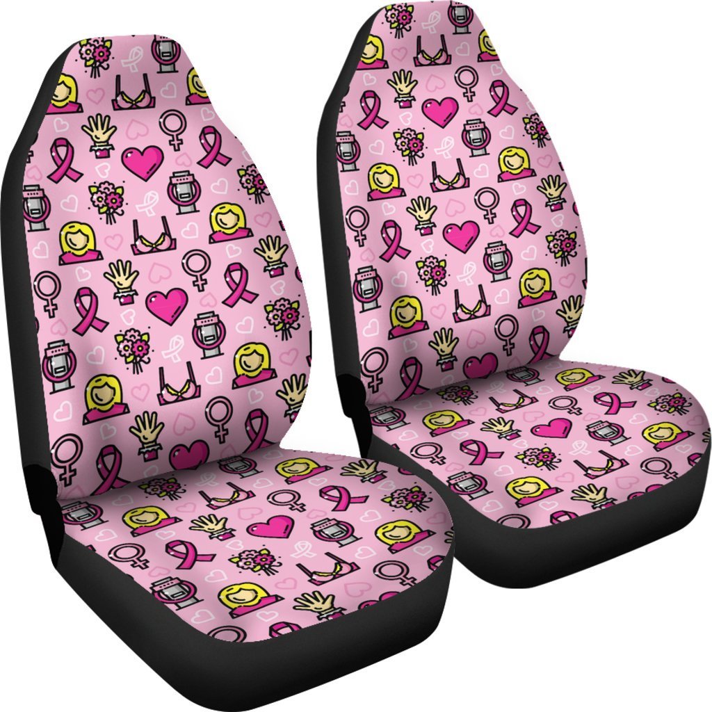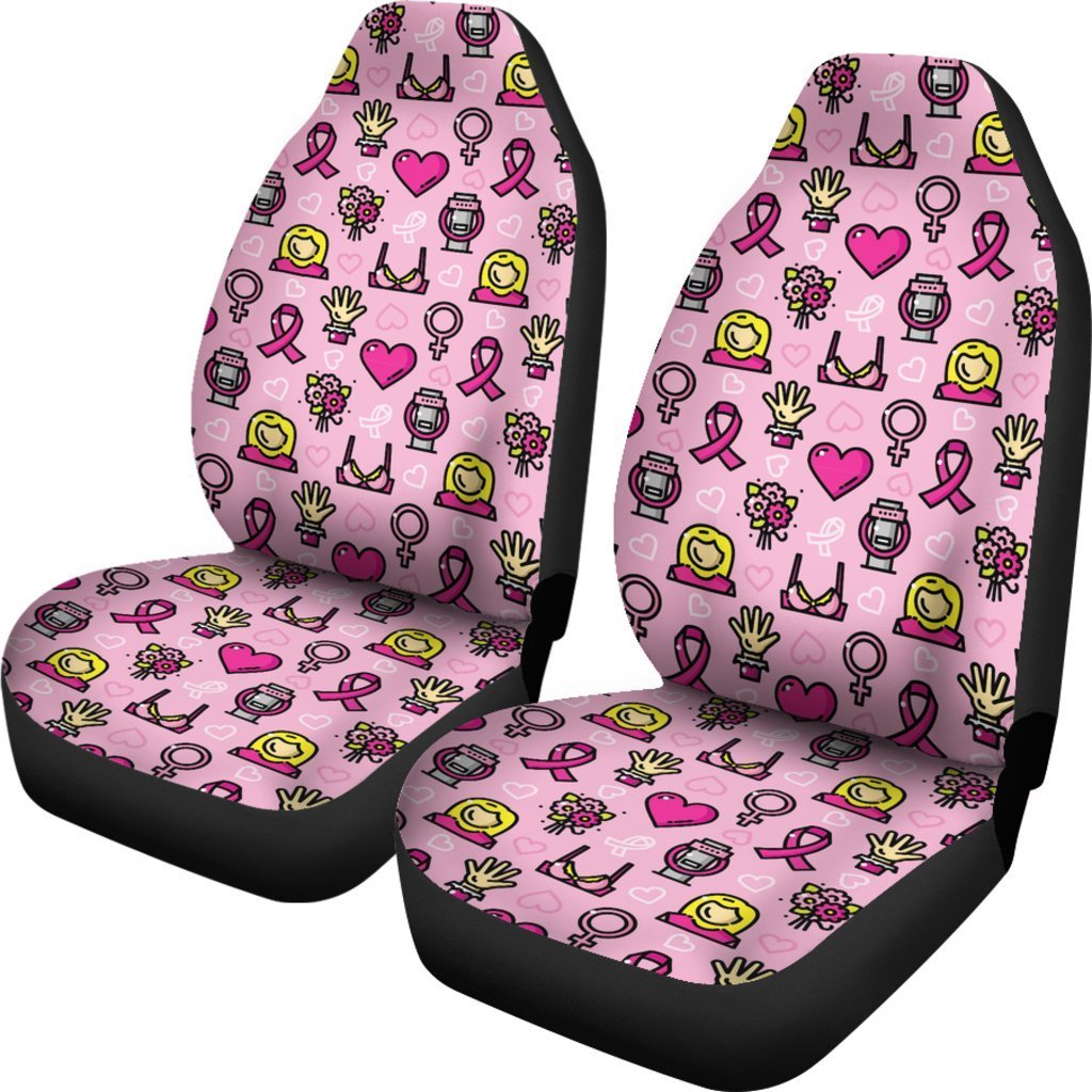 Pink Ribbon Breast Cancer Awareness Print Pattern Seat Cover Car Seat Covers Set 2 Pc, Car Accessories Car Mats