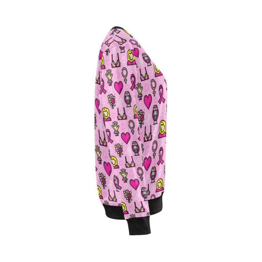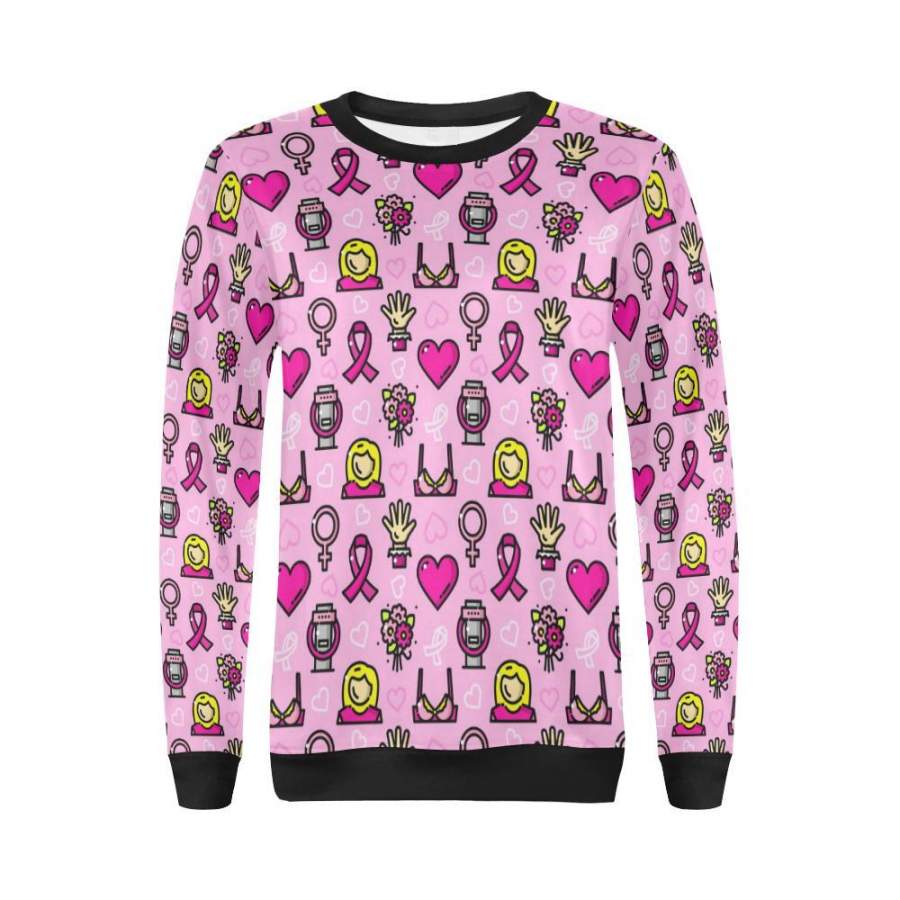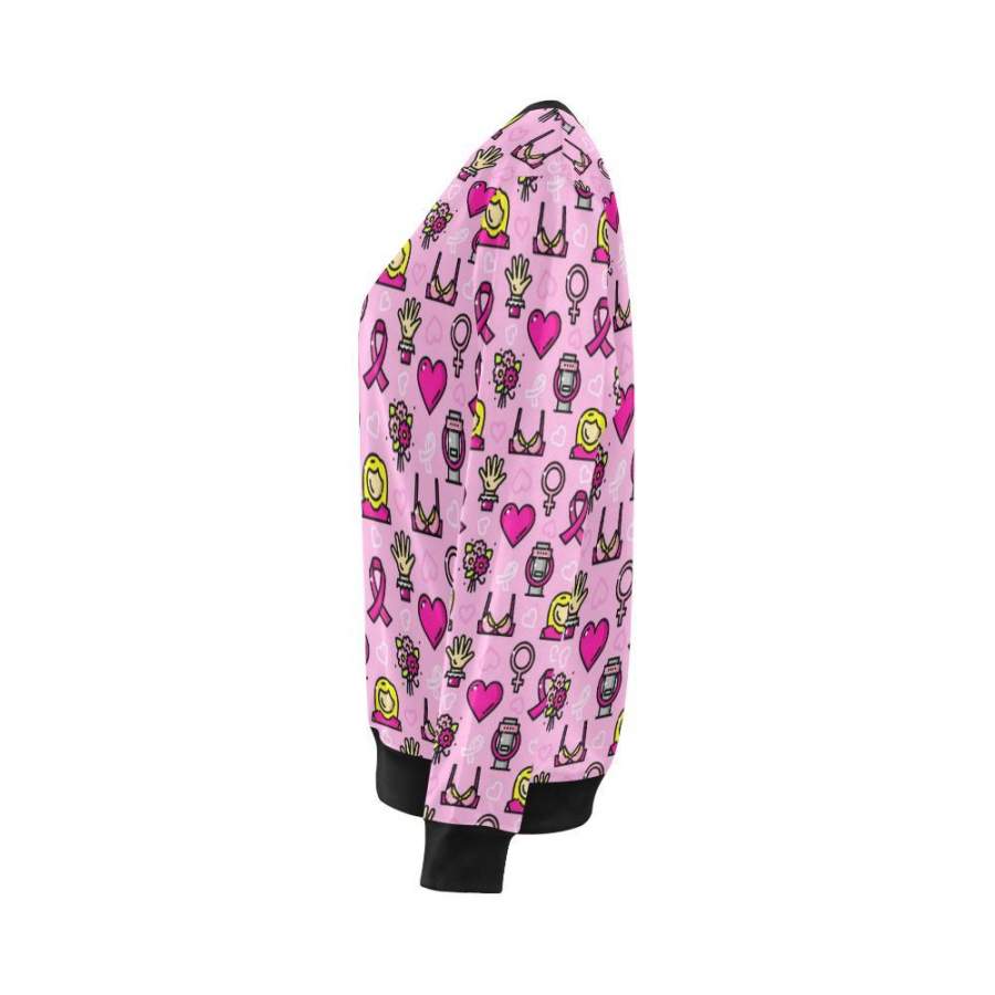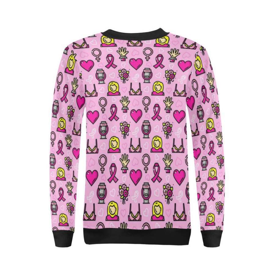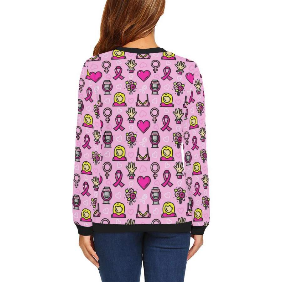 Pink Ribbon Breast Cancer Awareness Print Pattern Women Crewneck Sweatshirt