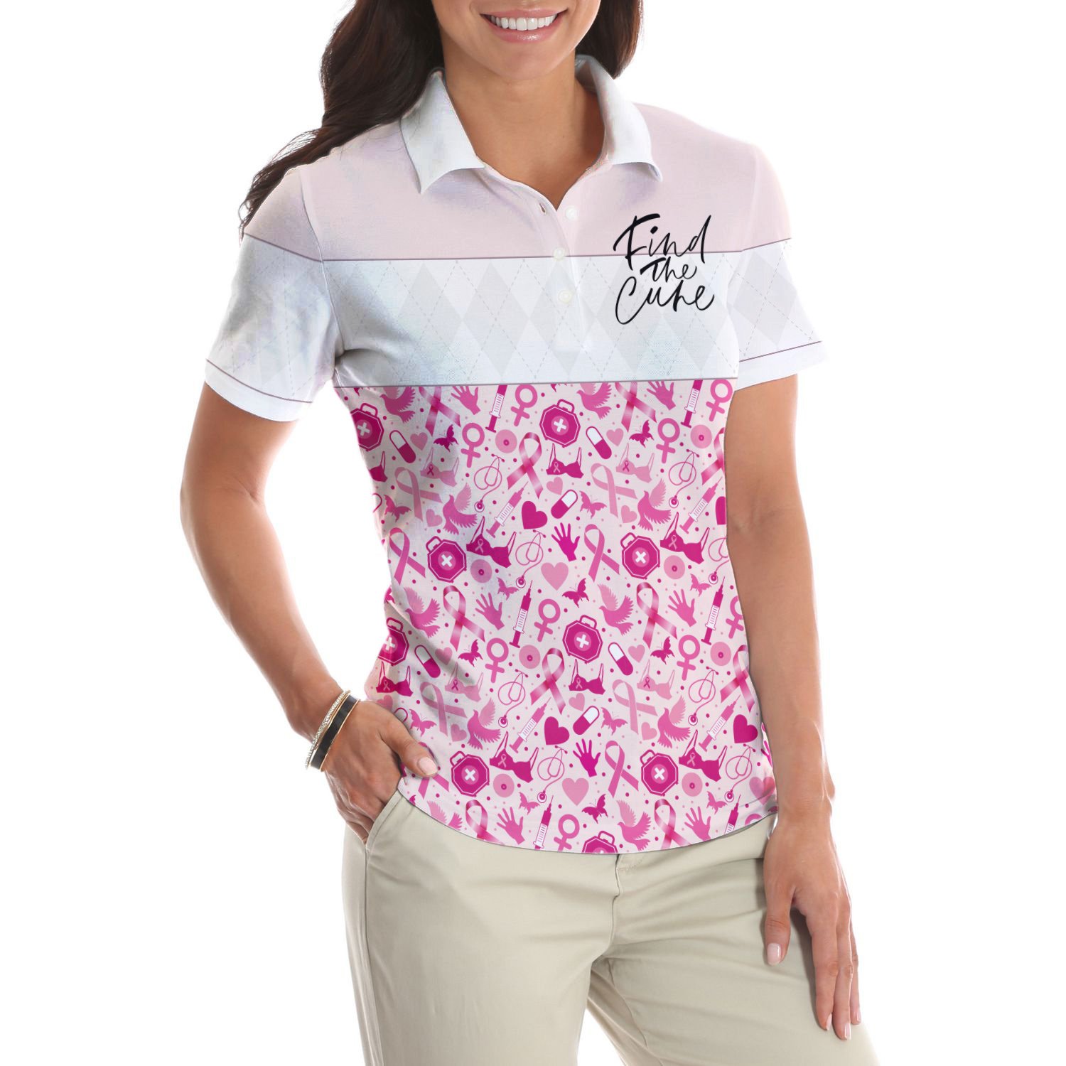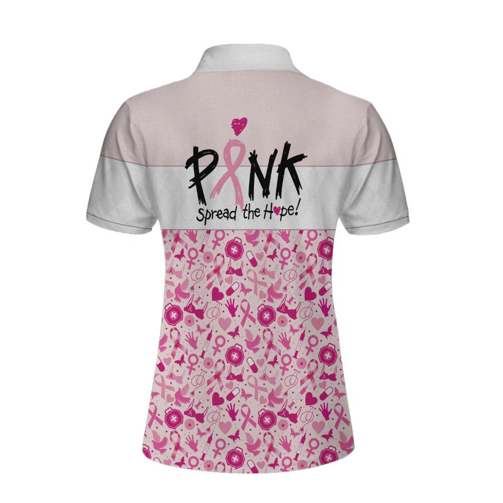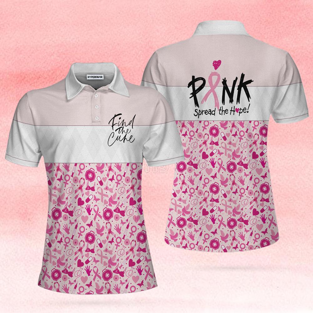 Pink Spread The Hope Find The Cure Breast Cancer Awareness Short Sleeve Women Polo Shirt, Pink Ribbon Shirt