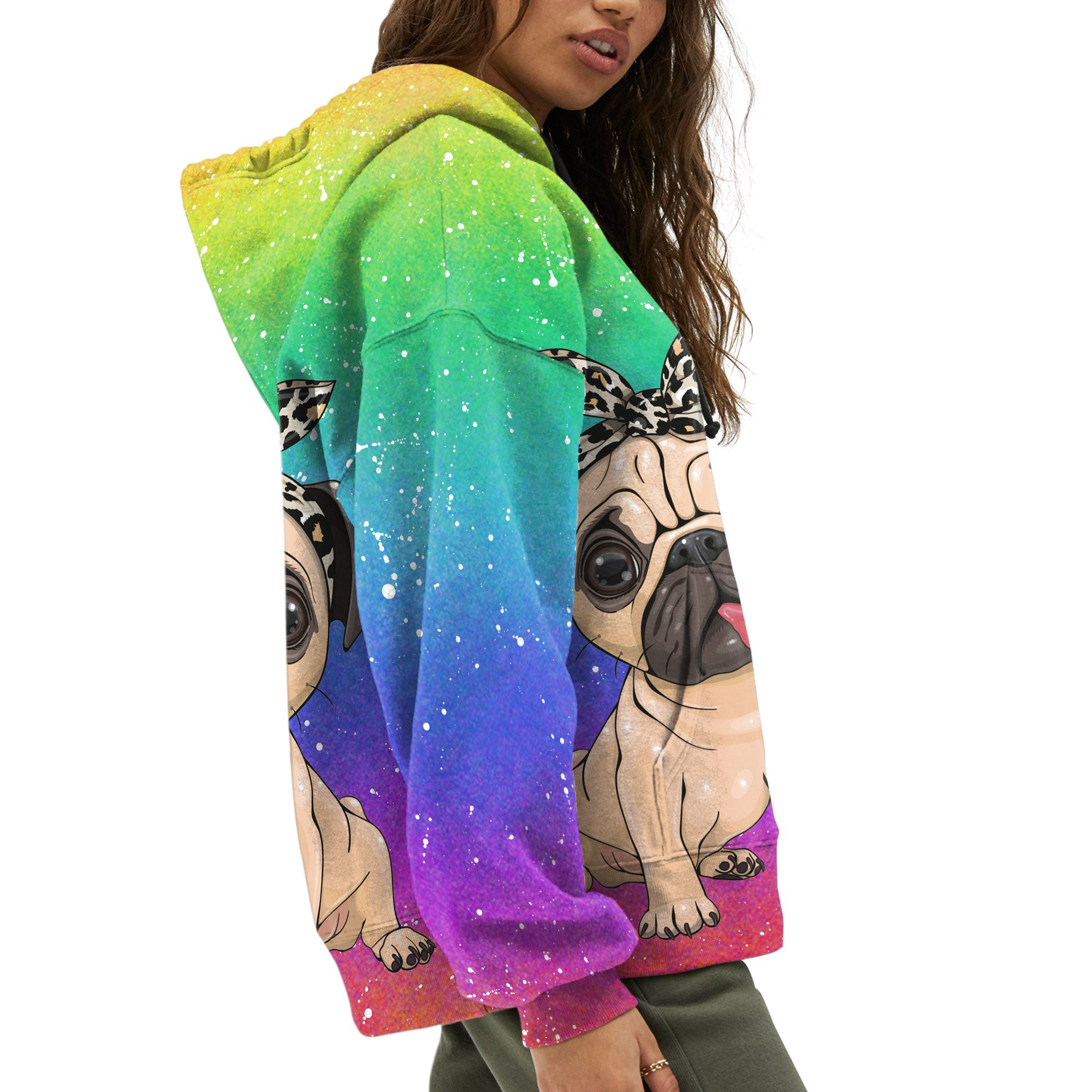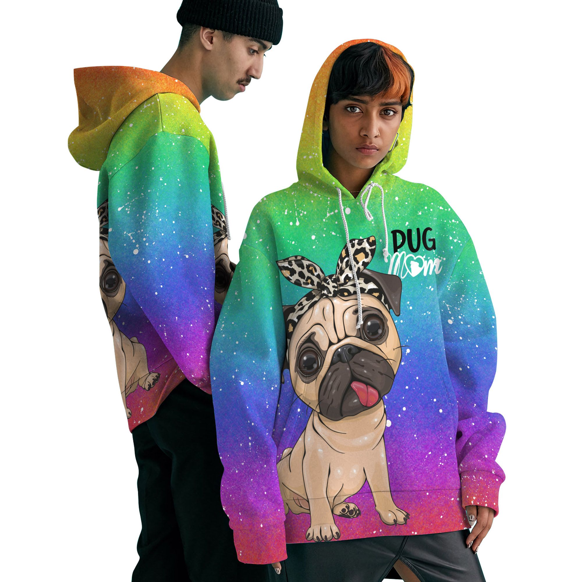 Pug Mom Rainbow Color Custom Name 3D Hoodie Shirt For Dog Mother On Mother’s Day