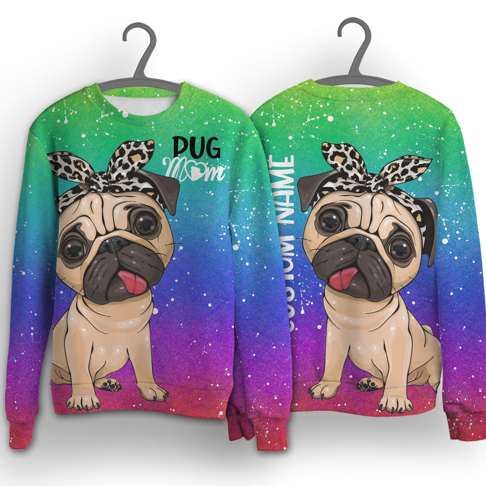 Pug Mom Rainbow Color Custom Name 3D Long Sleeve Shirt For Dog Mother On Mother’s Day