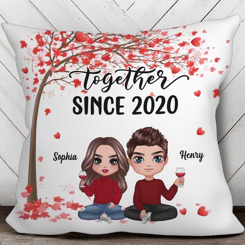 Red Tree Doll Couple Sitting Valentine‘S Day Gift Personalized Pillow (Insert Included)