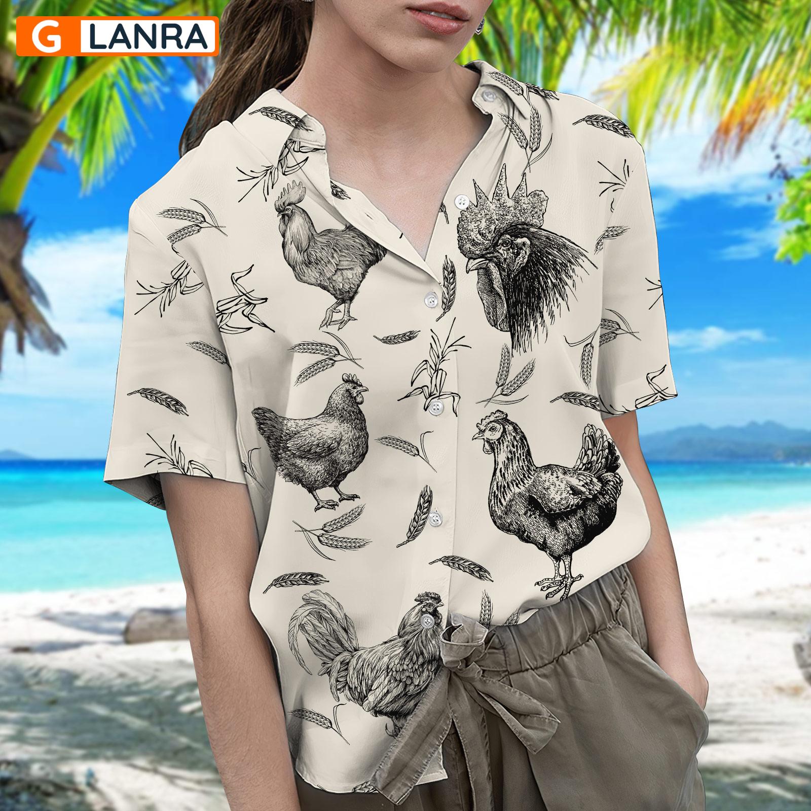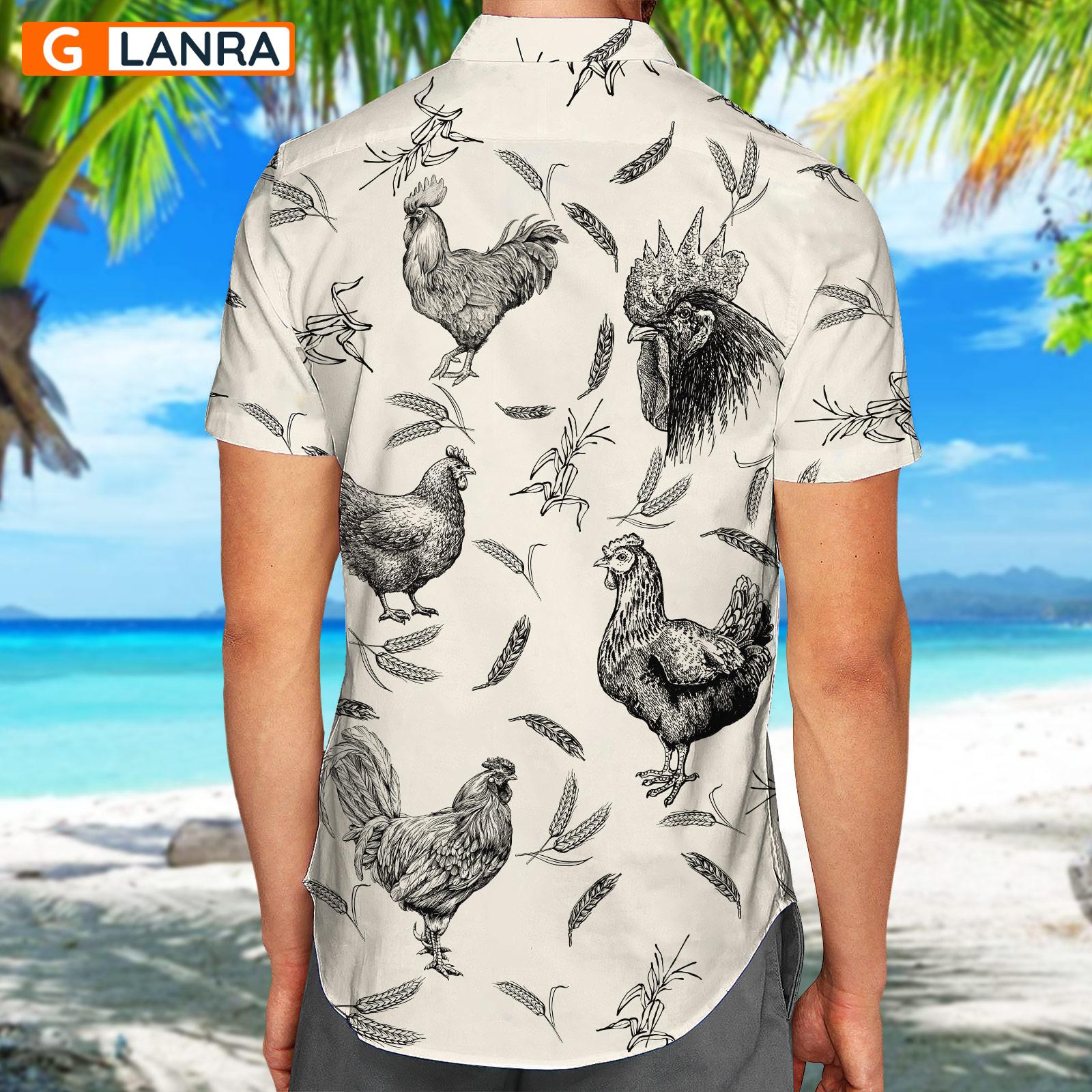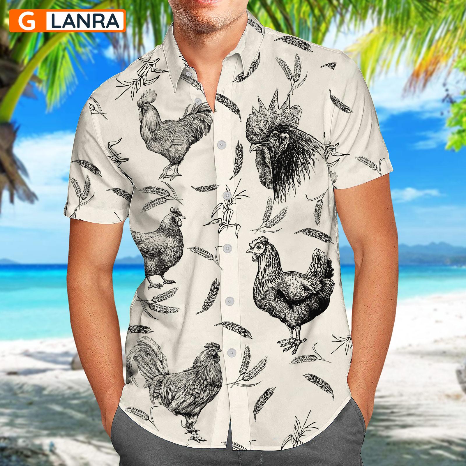 Rooster Button Shirt, Rooster Farm Button Shirt, Summer Chicken Hawaiian Shirt, Farm Chicken Hawaiian Shirt, Farm Animal Shirt