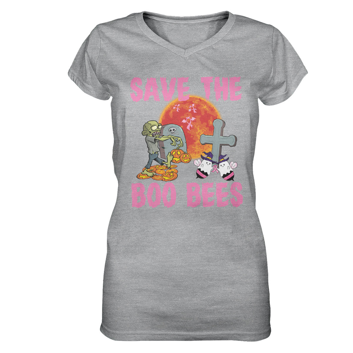 Save The Boo Bees Halloween Breast Cancer Awareness Shirt, Breast Cancer Awareness Month Women V-Neck T-Shirt