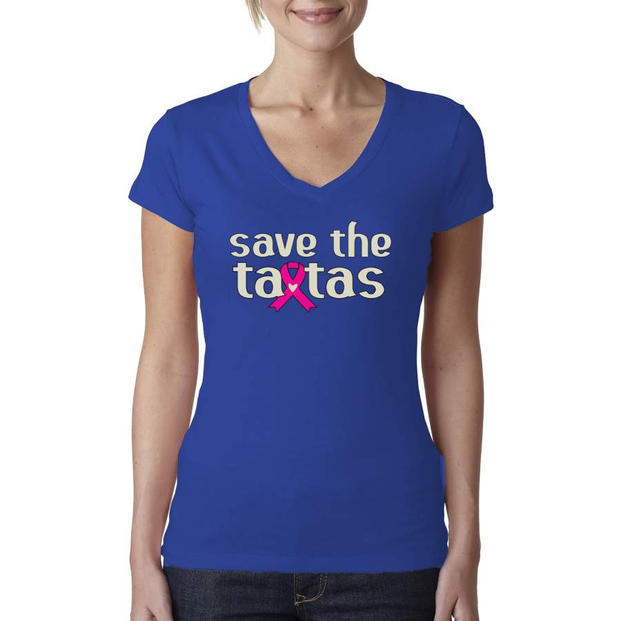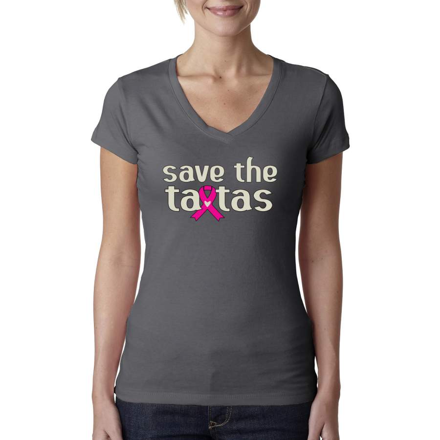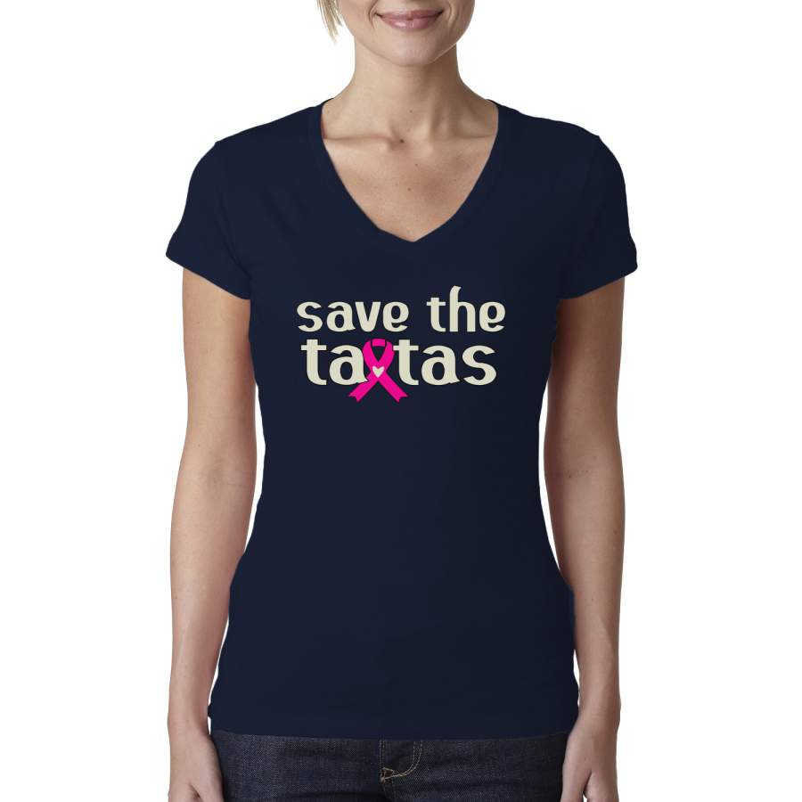 Save the Tatas Survivor Breast Cancer Awareness Womens Junior Fit V-Neck Tee