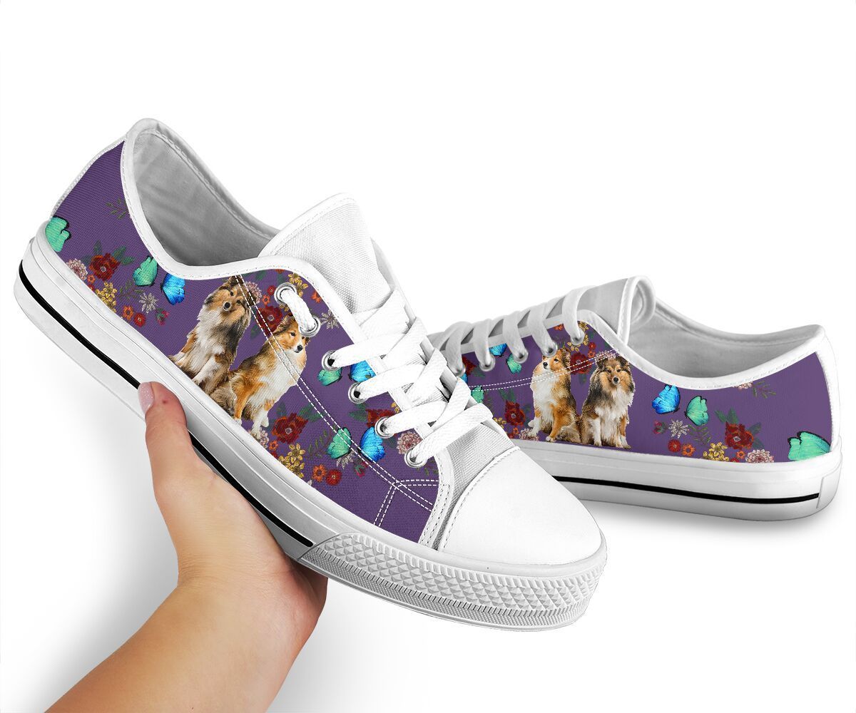 Shelties Butterflies Flowers Low Top Shoes