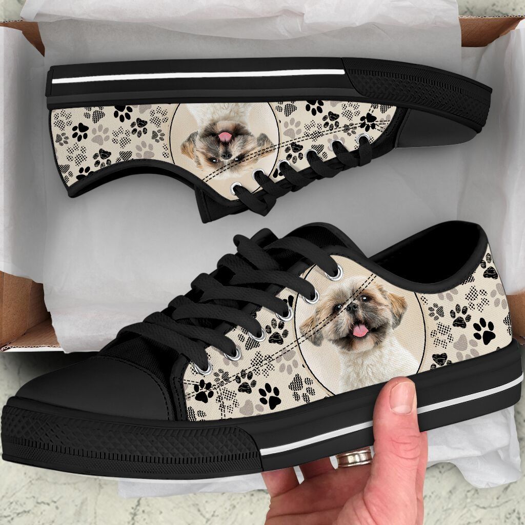 Shih Tzu Dog Pattern Brown Canvas Low Top Shoes