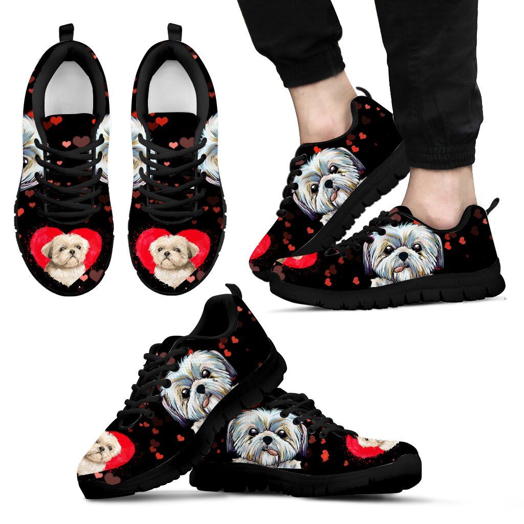 Shih Tzu Heart Background Sneakers Shoes
