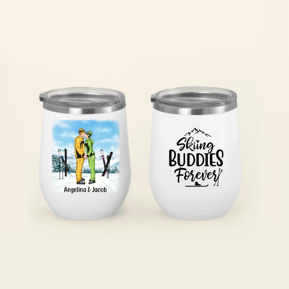 Skiing Buddies Forever – Personalized Wine Tumbler For Couples, For Him, Her, Skiing