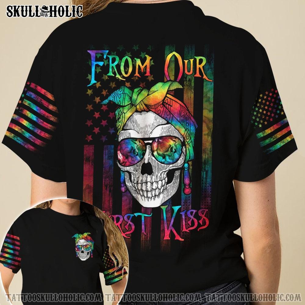 Skull Couple From Our First Kiss Till Our Last Breath Tie Dye Unisex Aop T-Shirt #Hd