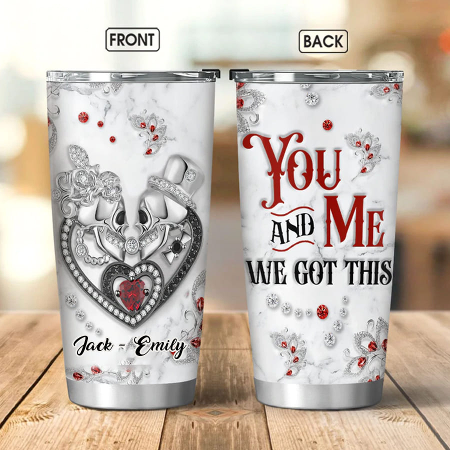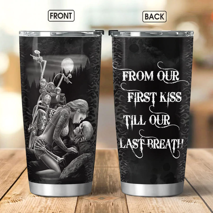Skull Couple Stainless Steel Tumbler, Skull Lovers, Skull Inspiration Tumbler Cup With Lid