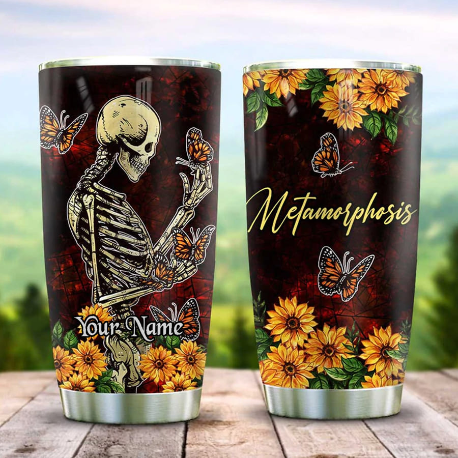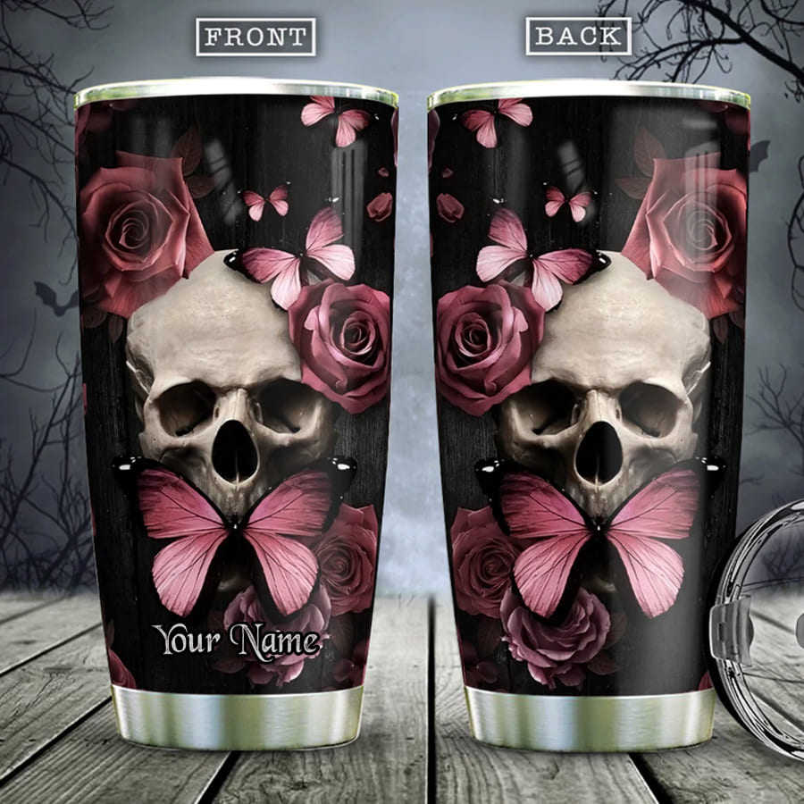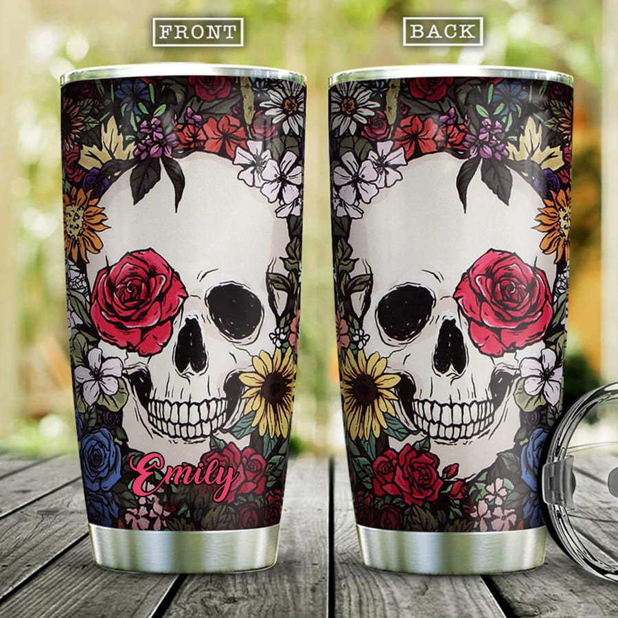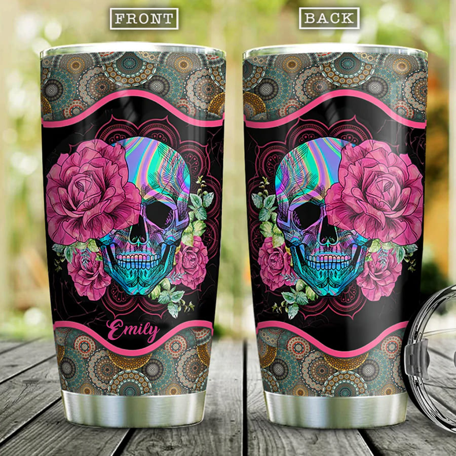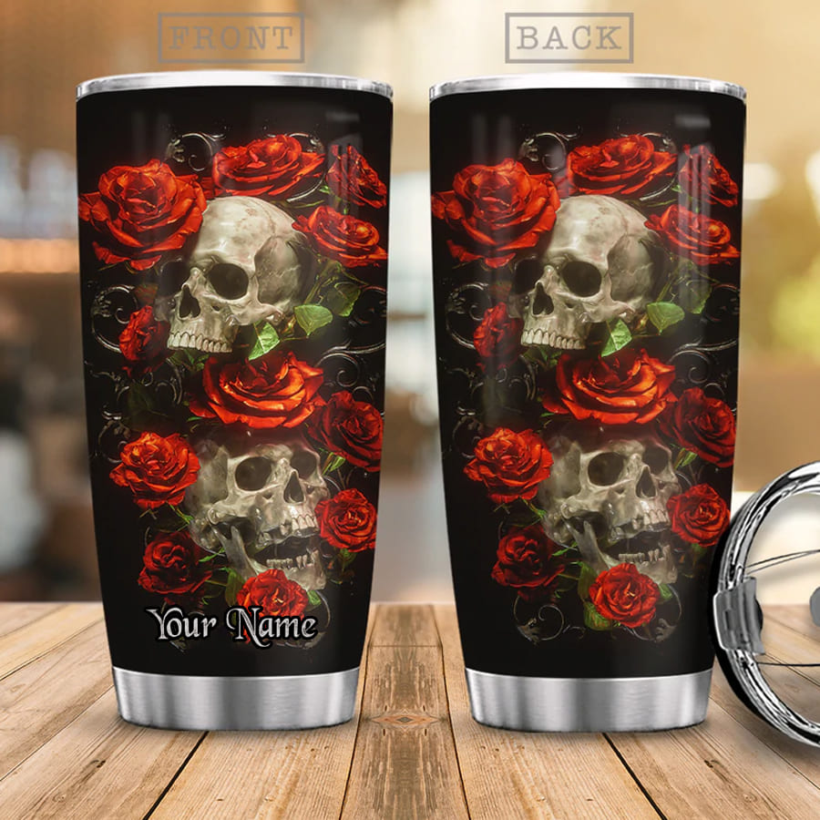 Skull Couple Together Forever Stainless Steel Tumble, Skull Lovers, Skull Inspiration Tumbler Cup With Lid