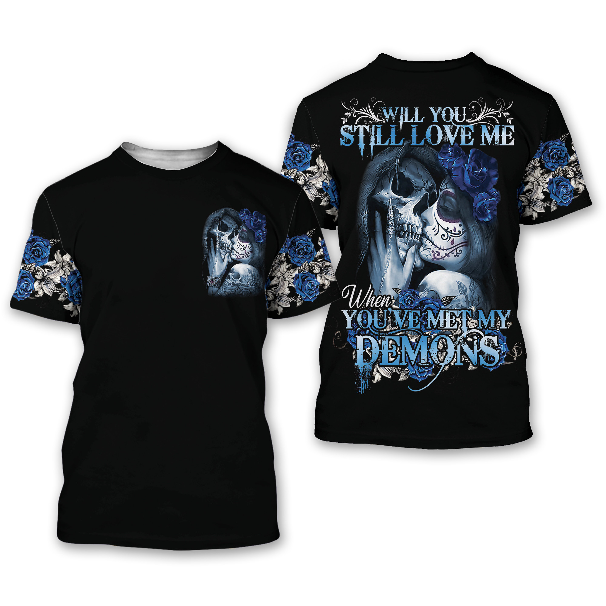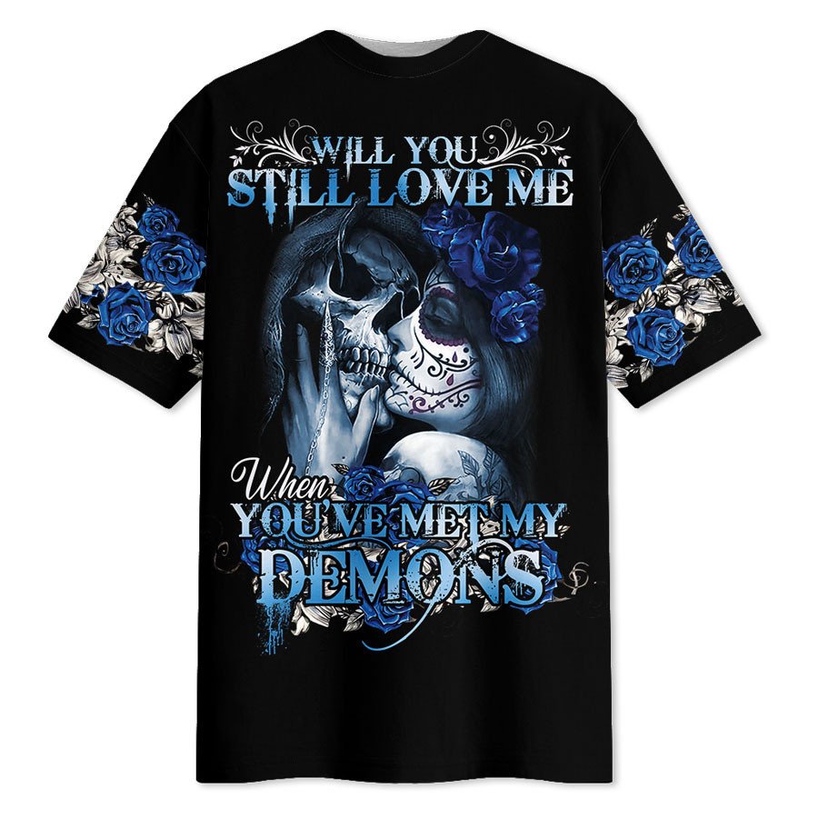 Skull Couple Will You Still Love Me, When You’Ve Met My Demons Aop T-Shirt #Hd