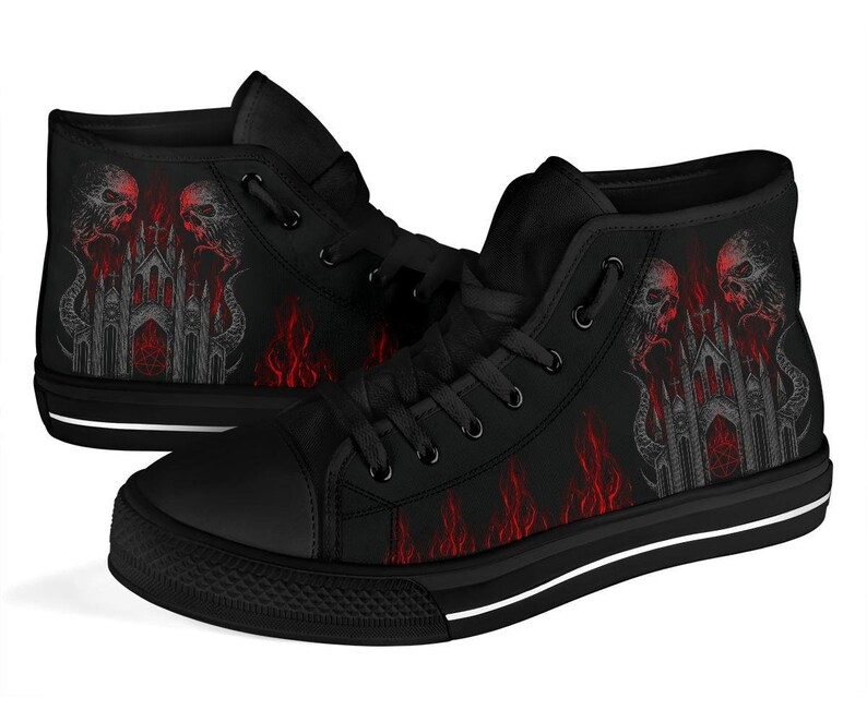 Skull Demon Satanic Pentagram Church Flame High Tops Dark Version-Baphomet High Tops-Satanic High Tops-Pentagram High Tops-Skull High Tops-