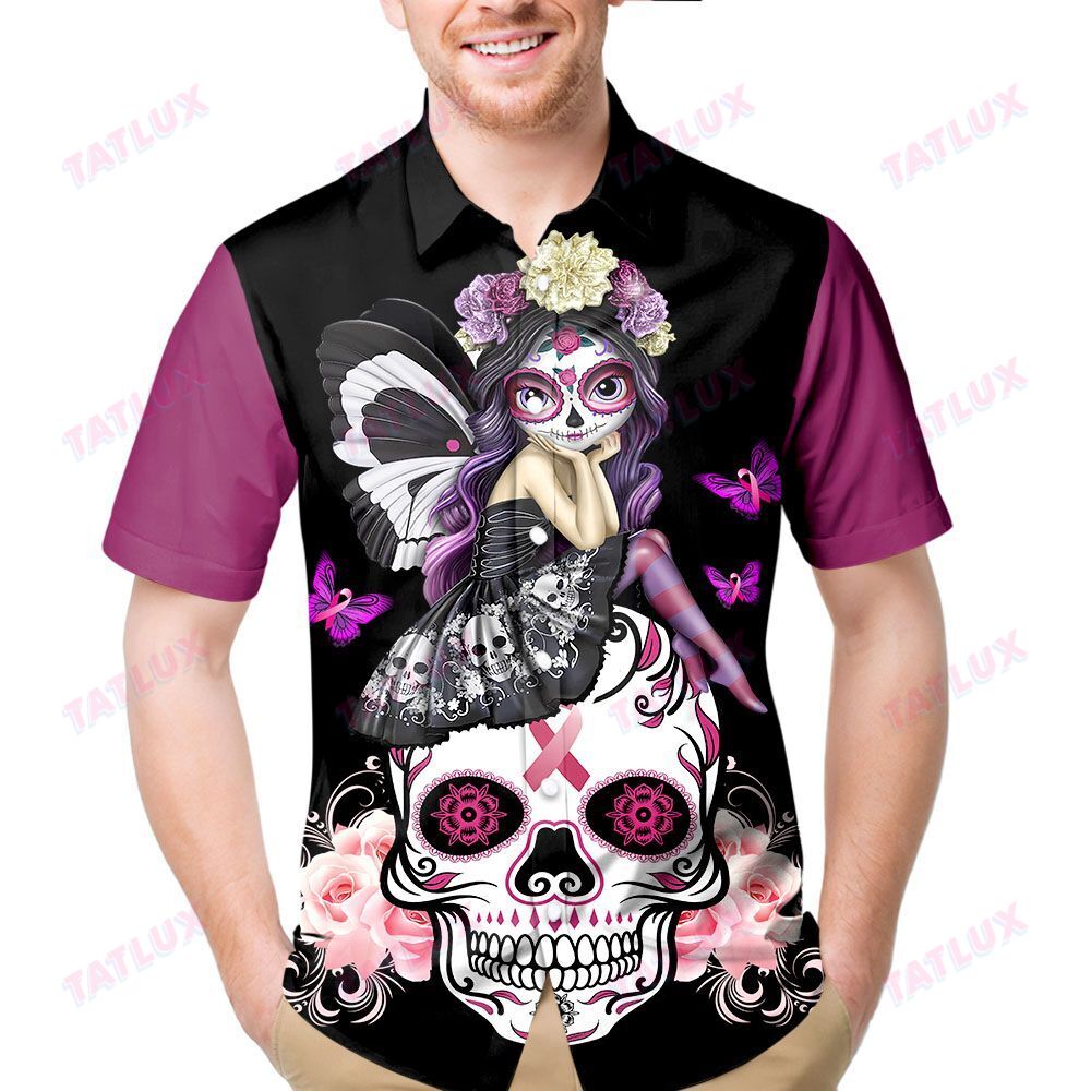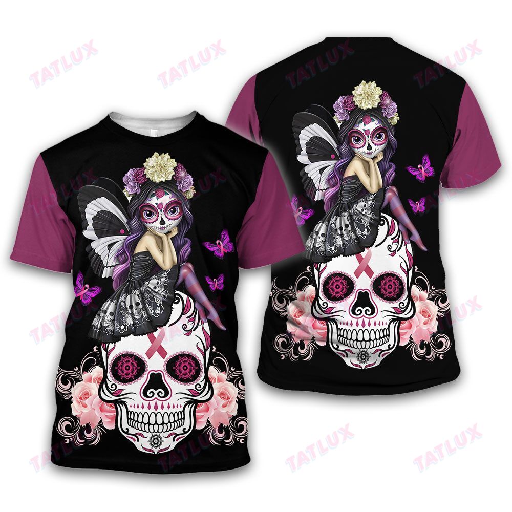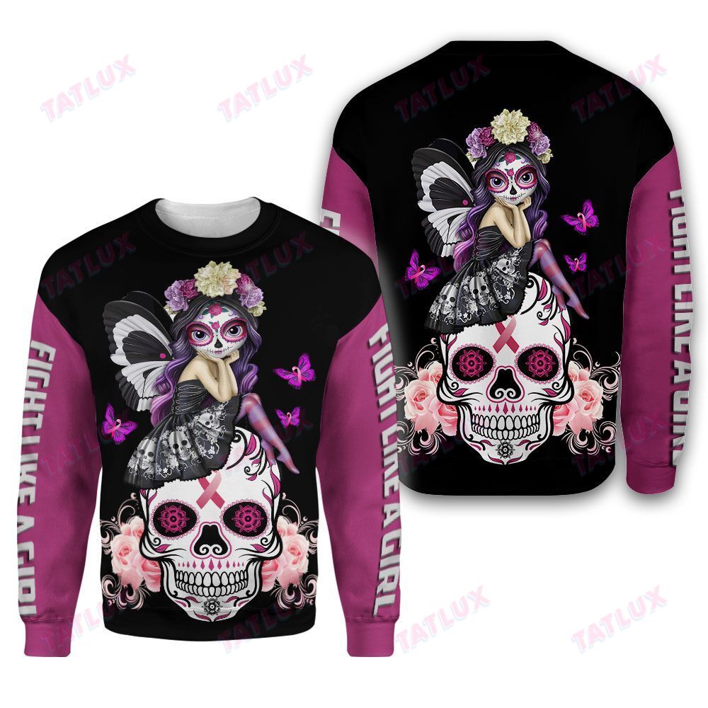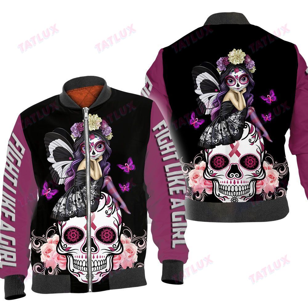 Skull Fight Like A Girl Breast Cancer Awareness 3D All Over Printed Shirt, Sweatshirt, Hoodie, Bomber Jacket Size S – 5Xl