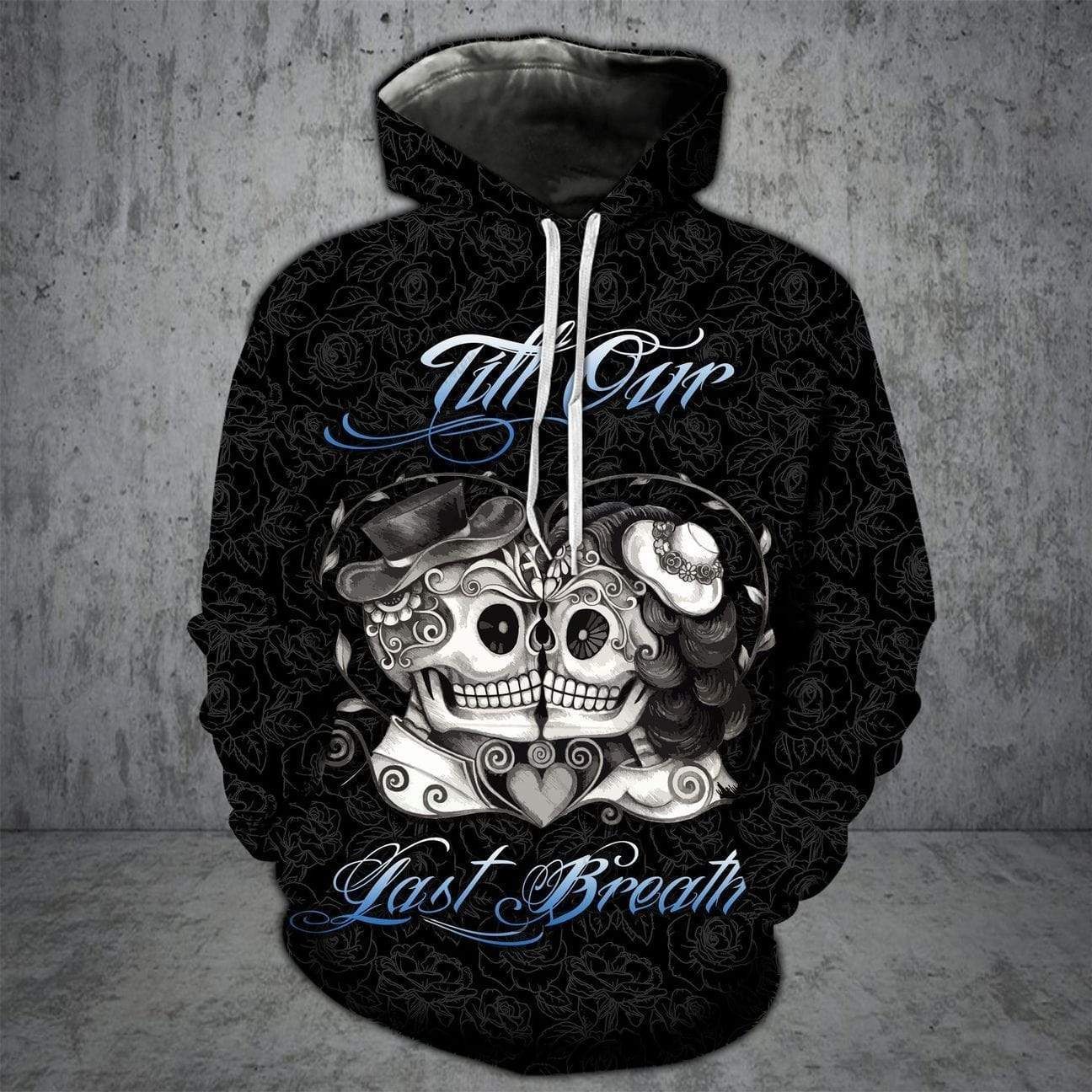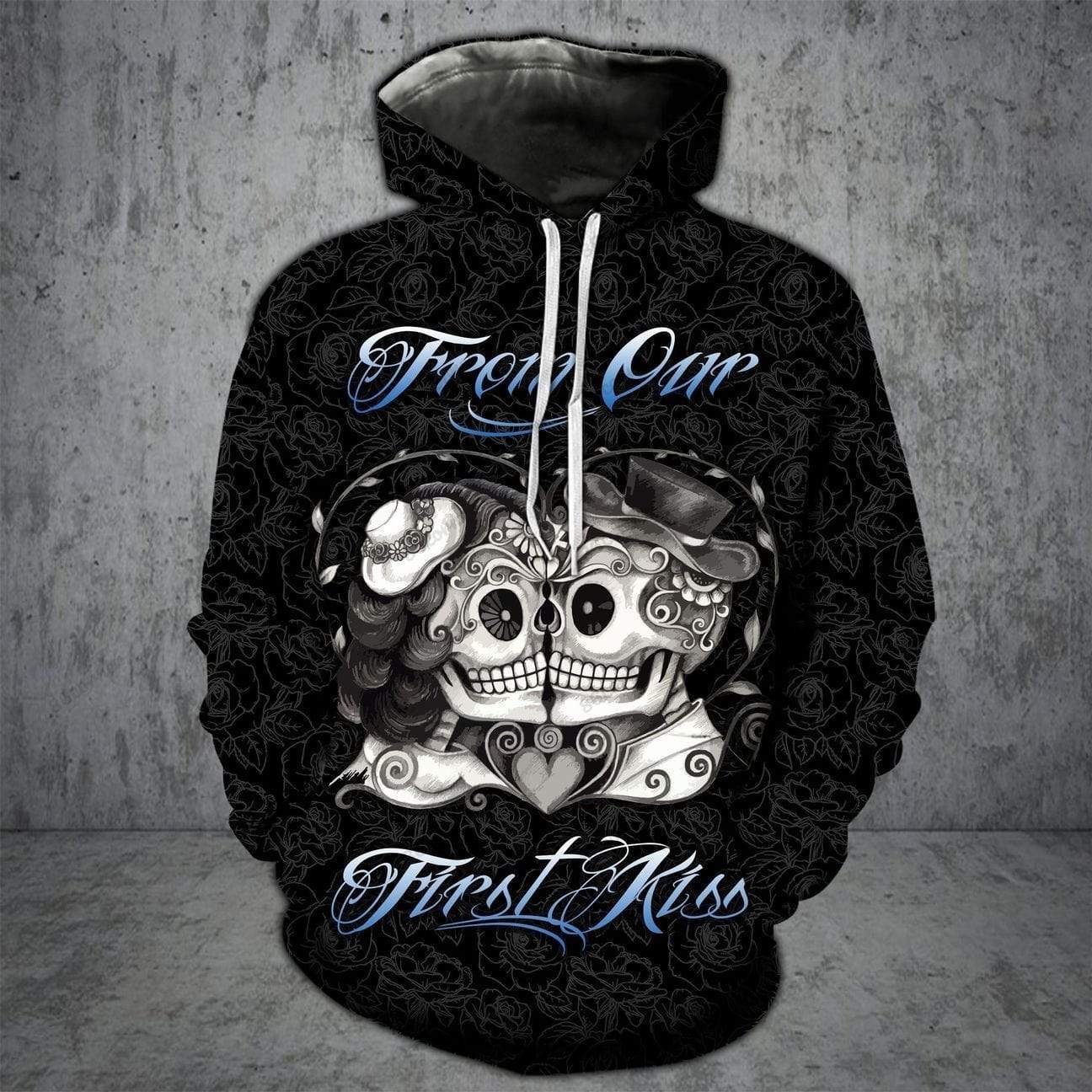 Skull Lover From Our First Kiss Till Our Last Breath Calavera Couple Hoodie 3D All Over Print